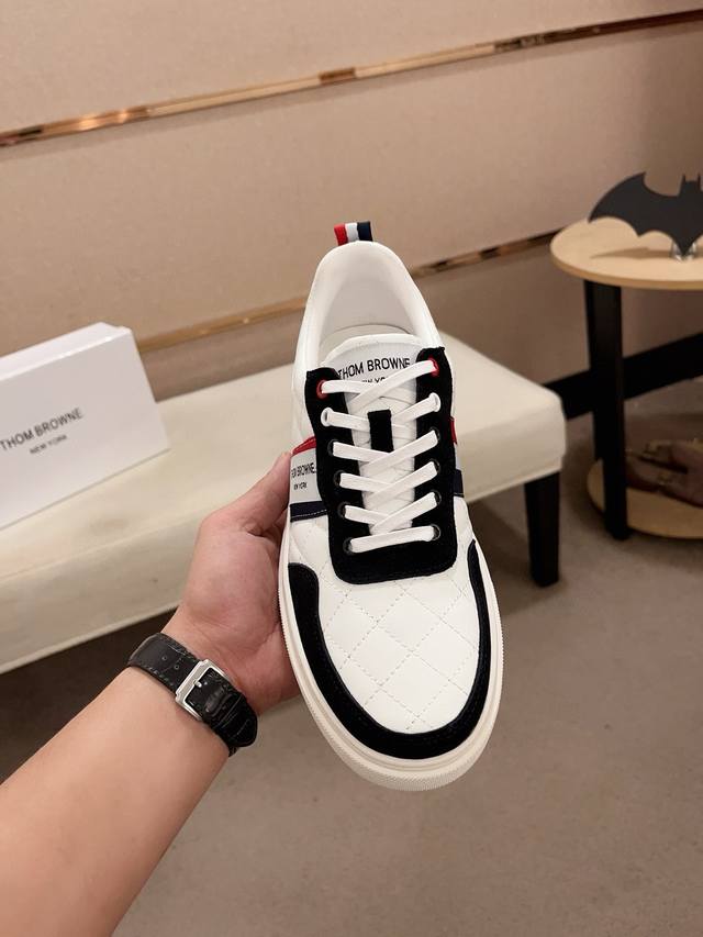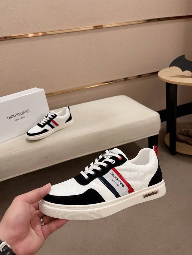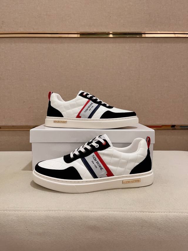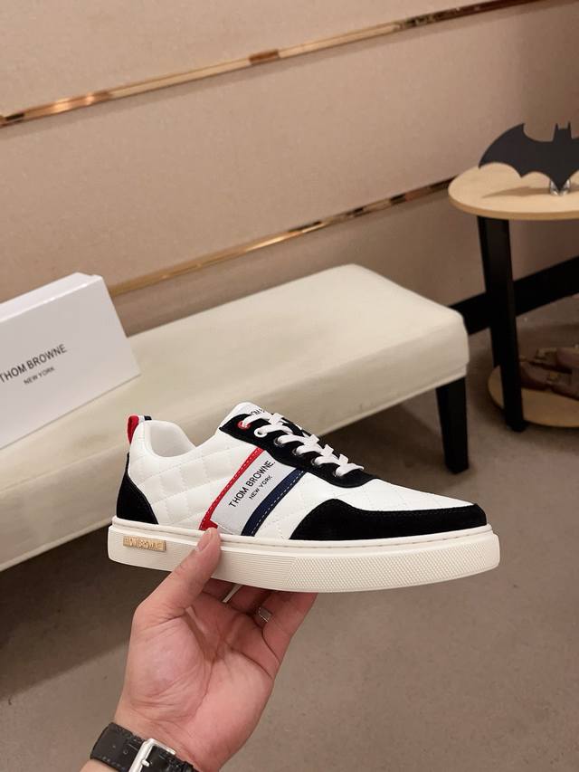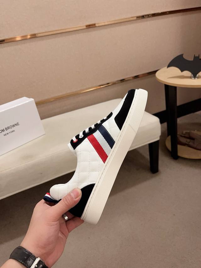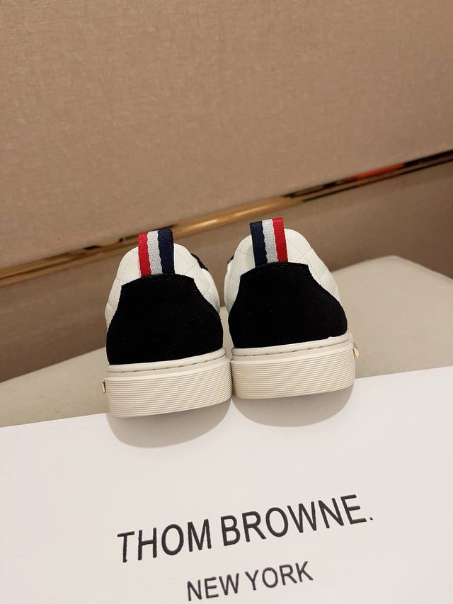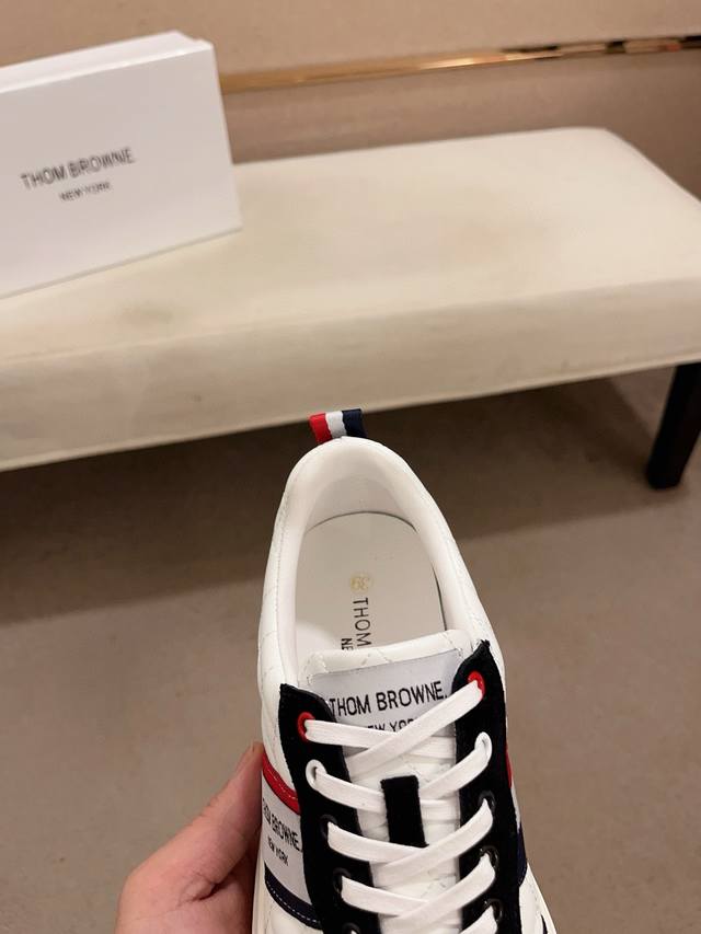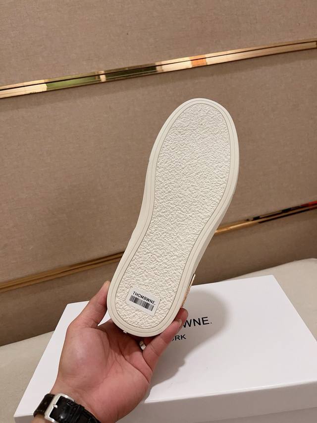 工厂价 高端版羊皮里 thom browne 汤姆 布朗 new york 汤姆再上爆款!这个邪魅酷感的新锐品牌 让我们在这个夏天有了放松 时髦 个性的新选择 tb白鞋风暴.鞋面采用原版进口牛皮内里羊皮 鞋底采用原版鞋底制作 织带红白蓝3道杠杠点亮了品牌的元素 码数:38-44