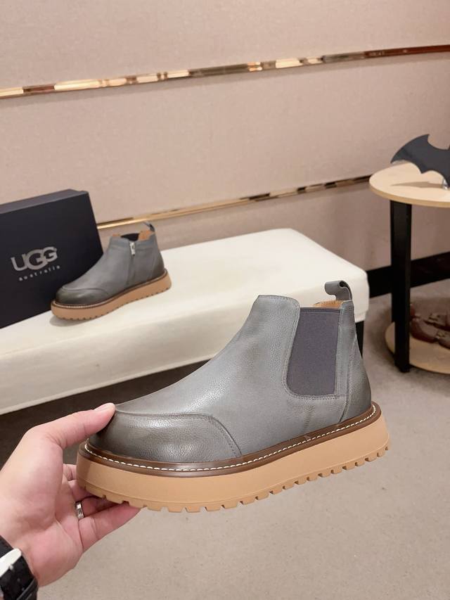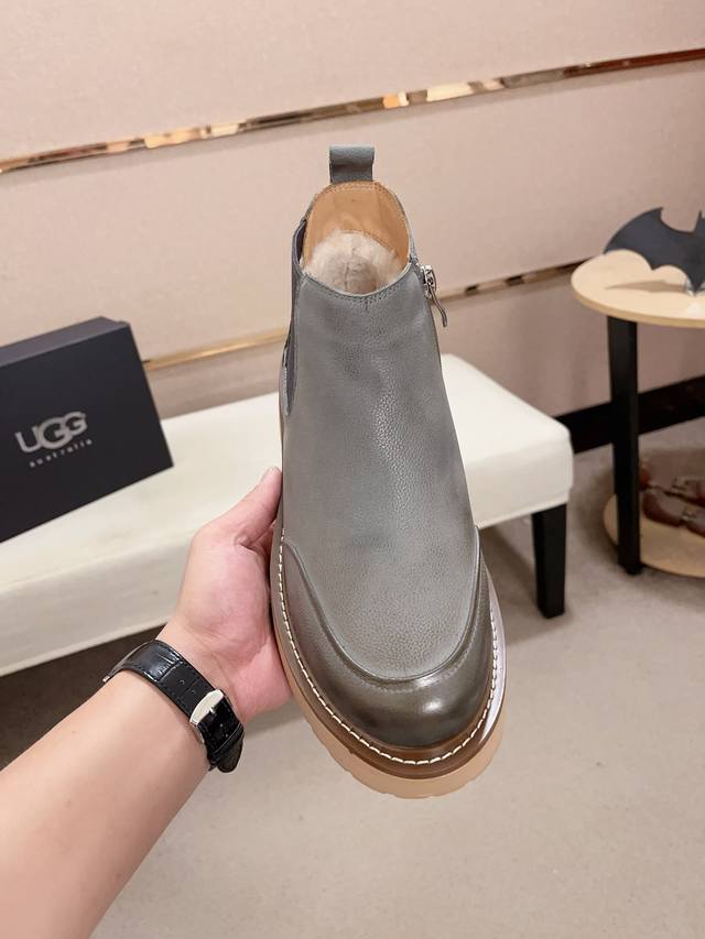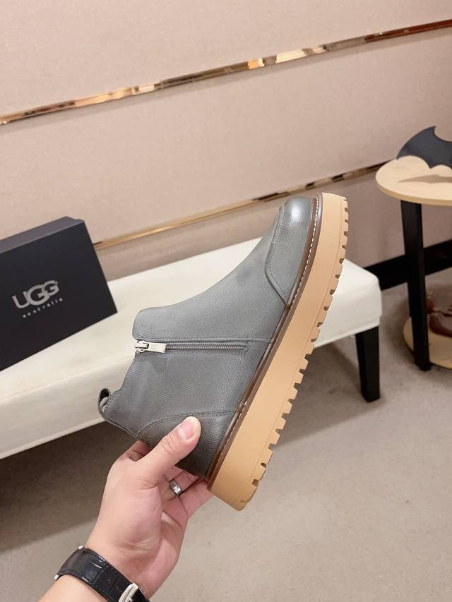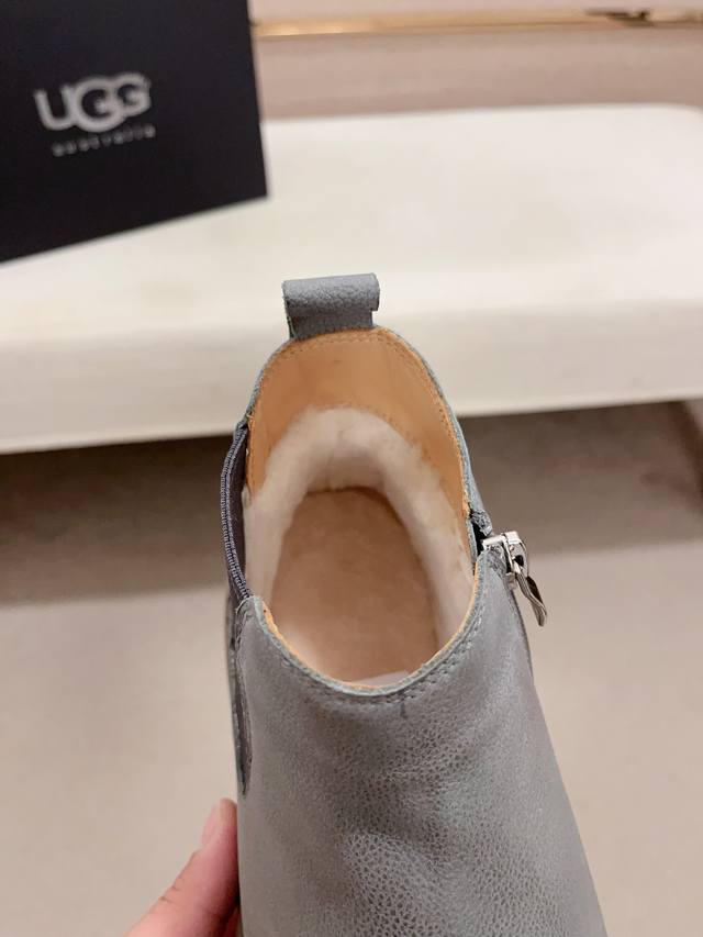 工厂价: 高端货 UGG最新款 1:1品质,面料:欧洲进口牛皮高端品质头层牛皮。内里:羊毛内里,鞋底: 纯进口橡胶发泡大底。高端货,做工精细,潮流时尚。上脚非常