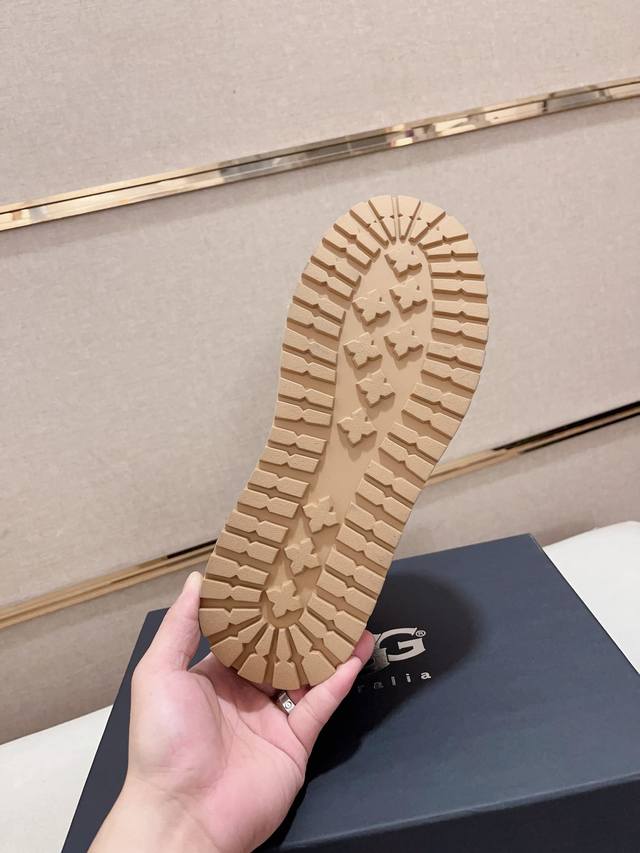 工厂价: 高端货 UGG最新款 1:1品质,面料:欧洲进口牛皮高端品质头层牛皮。内里:羊毛内里,鞋底: 纯进口橡胶发泡大底。高端货,做工精细,潮流时尚。上脚非常上档次。懂货的您一定无法拒绝码数: 38-44