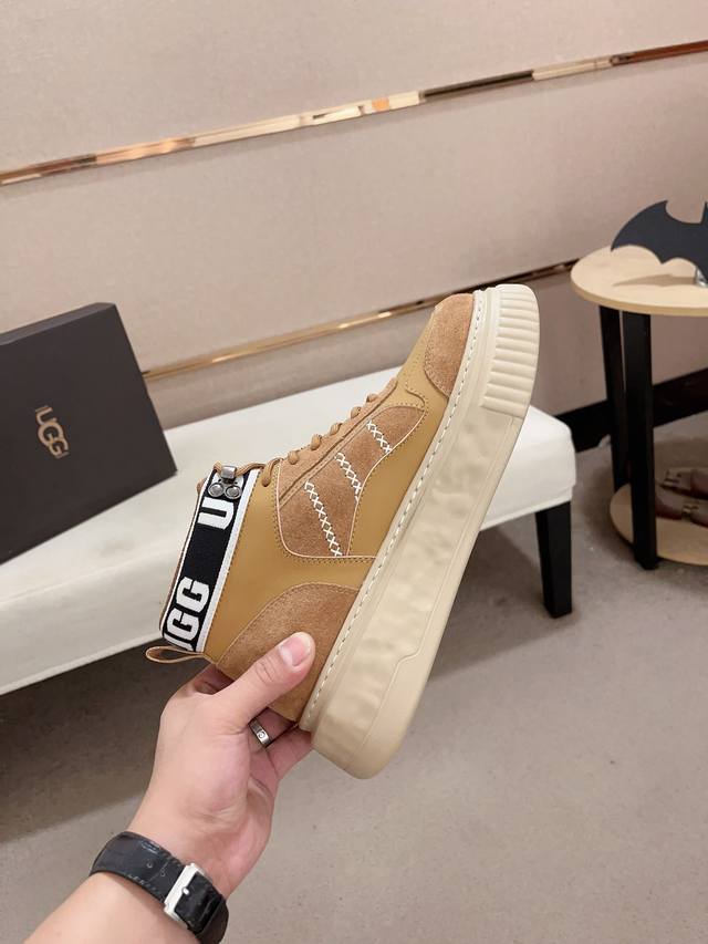 工厂价: 高端货 Ugg最新款 1:1品质,面料:欧洲进口牛皮高端品质头层牛皮 内里:羊毛内里,鞋底: 纯进口橡胶发泡大底 高端货,做工精细,潮流时尚 上脚非常