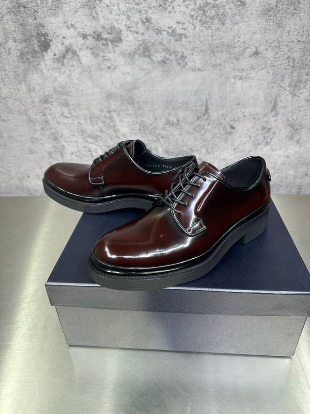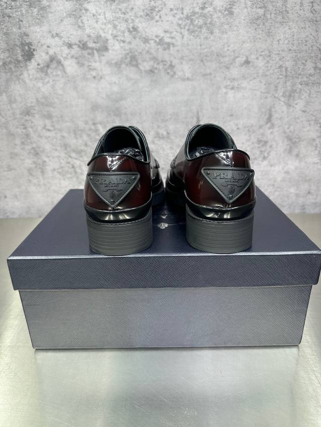 工厂价: 1985春最新款擦色复古乐福鞋,英伦风细带商务鞋,本厚底三角标德比鞋ken同款,大底橡胶底,面料进口开边珠,牛皮里,牛皮垫脚黑红蓝三色全套包装码数39