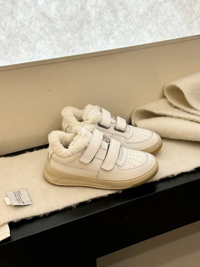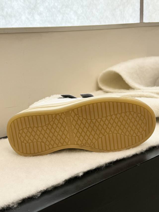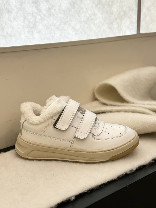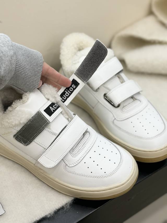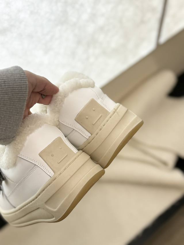 工厂价: Acne Studio*S 24 Ss专柜最新厚底休闲魔术贴笑脸小白鞋 羊毛