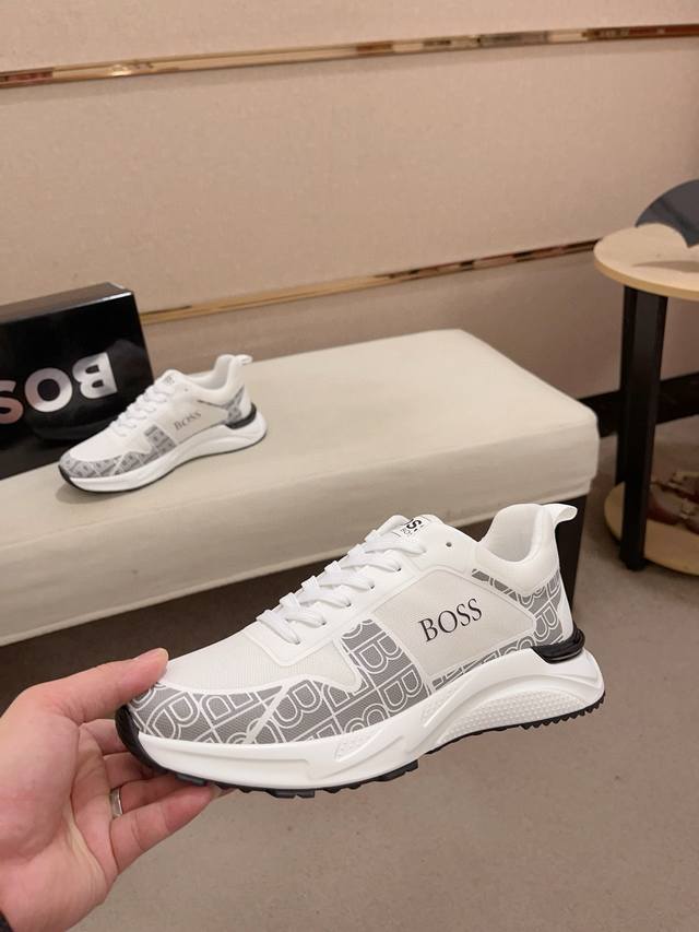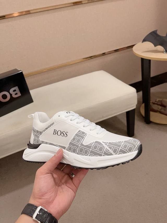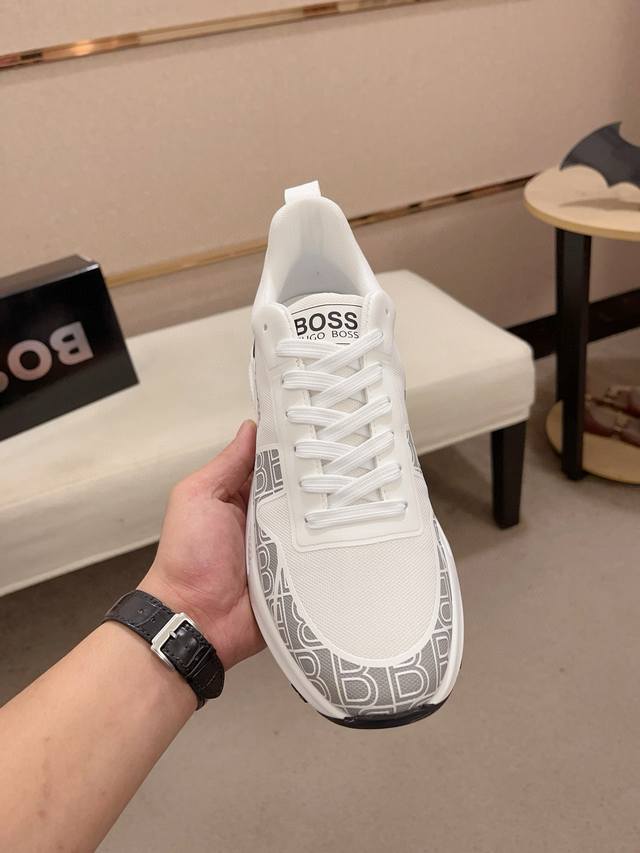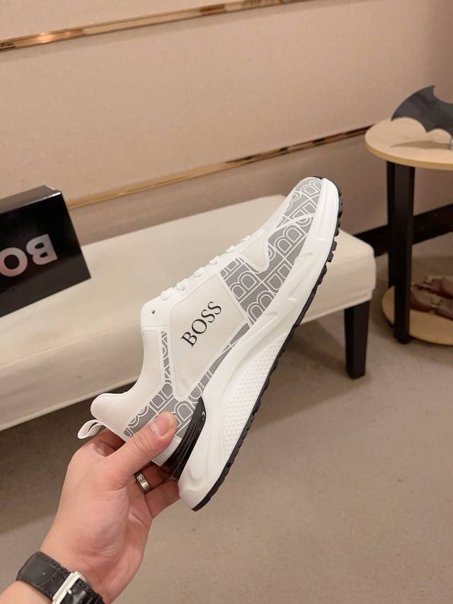 工厂价: BOSS 最新休闲男鞋,欢迎1:1对比,爆单款BOSS香港专柜休闲鞋,专柜品质,支持验货,优质做工,鞋面采用意大利进口飞织面料,透气羊皮内里,原版时尚运动大底 ,休闲时尚,高端品质,码数:38-44 可定做45不退换
