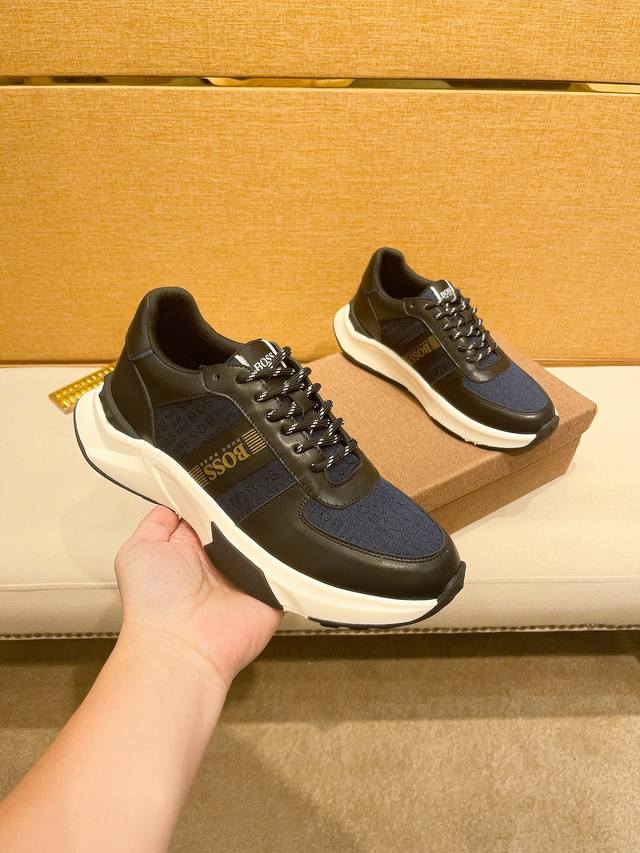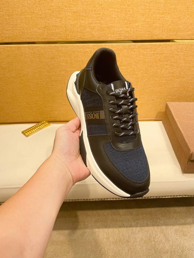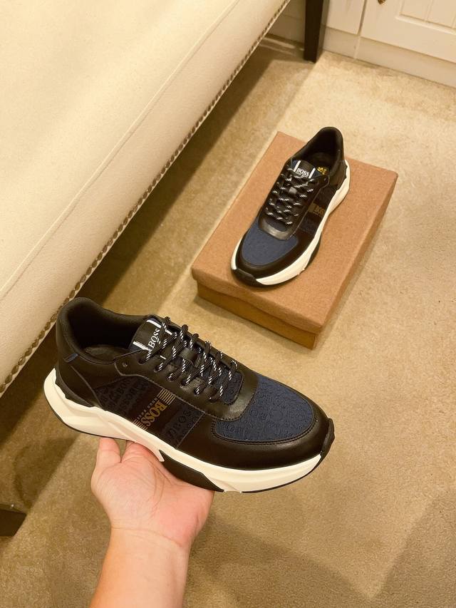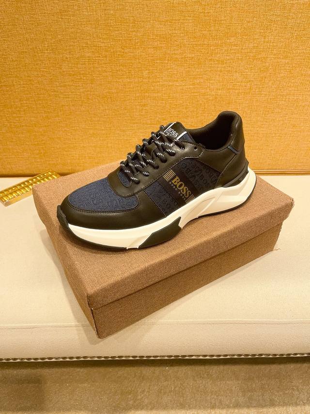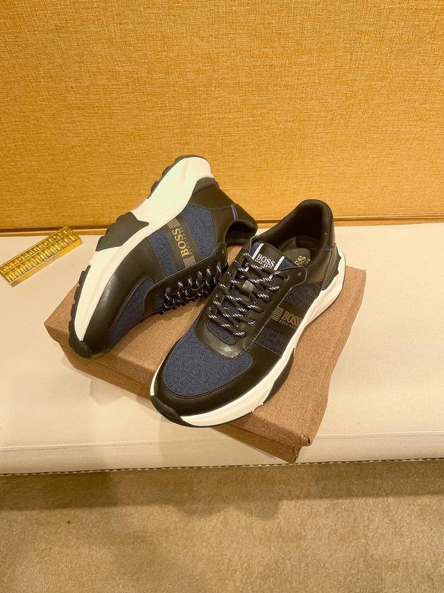 / 工厂价 Boss 2024新款精心打造,引爆全场!不断创新的国际品牌 此款男士四季休闲鞋,原版版本,鞋面采用牛皮面料 ,皮垫脚真爆超轻防滑大底,透气舒适以质量说