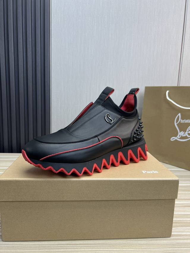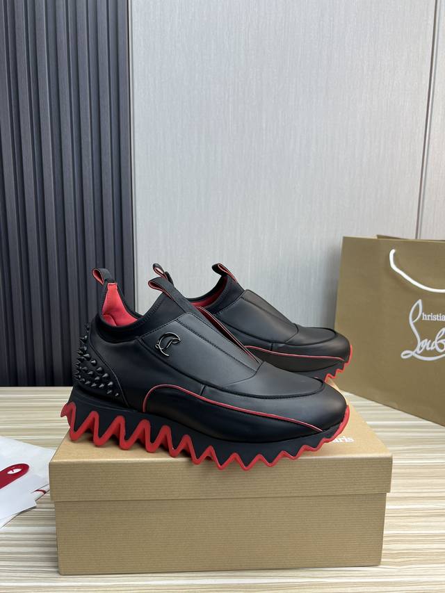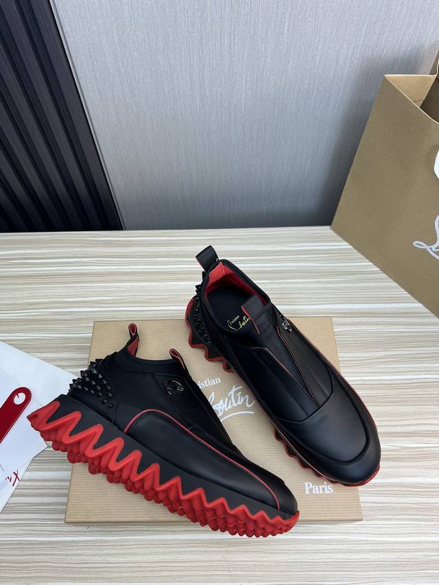 CL 爆款红底靴1:1原版开模,Christian* Louboutin,鞋面进口牛皮拼接&水染牛皮内里,原版大底