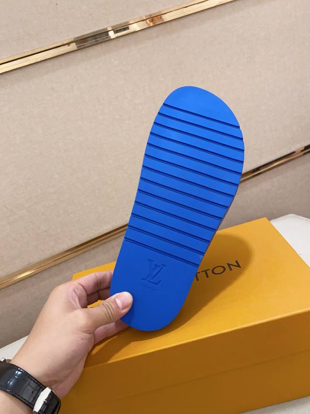 / 工厂价: LV打造顶级代购 男士春夏拖鞋专柜同步 鞋面意大利进口牛皮搭,标志图形高品质工艺,鞋底:原厂特供原版底,独家活动成型底超级舒适,原厂跟单货,高品质,可