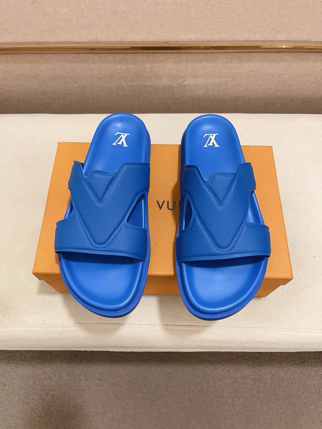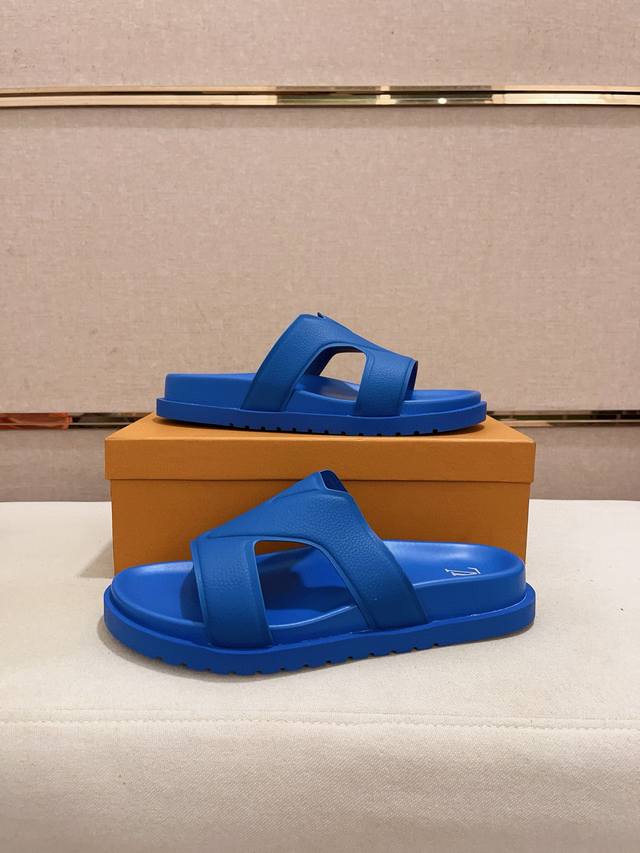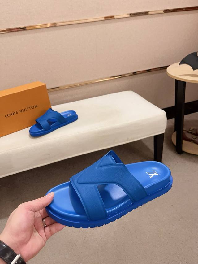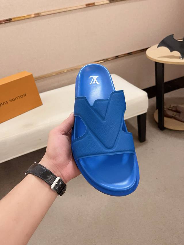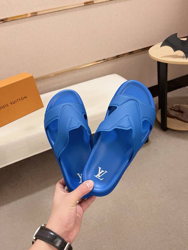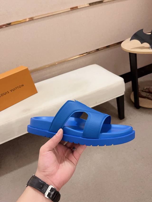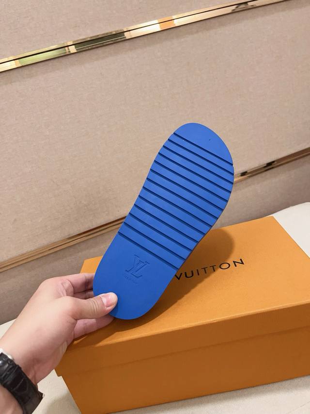/ 工厂价: LV打造顶级代购 男士春夏拖鞋专柜同步 鞋面意大利进口牛皮搭,标志图形高品质工艺,鞋底:原厂特供原版底,独家活动成型底超级舒适,原厂跟单货,高品质,可