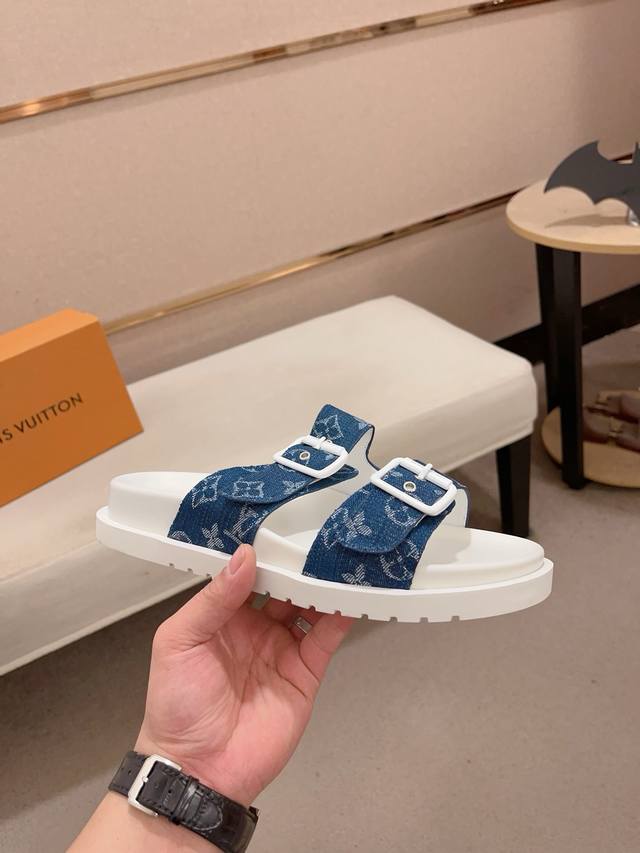 / 工厂价: LV打造顶级代购 男士春夏拖鞋专柜同步 鞋面意大利进口牛皮搭,标志图形高品质工艺,鞋底:原厂特供原版底,独家活动成型底超级舒适,原厂跟单货,高品质,可