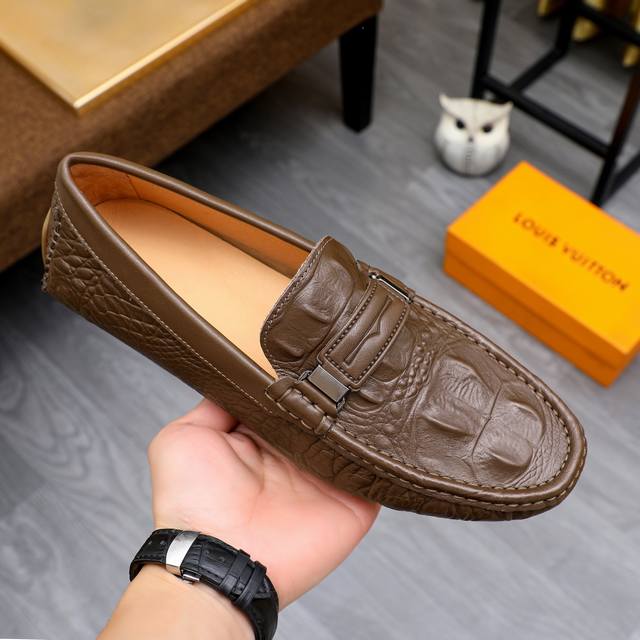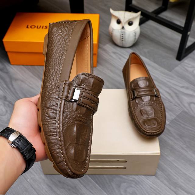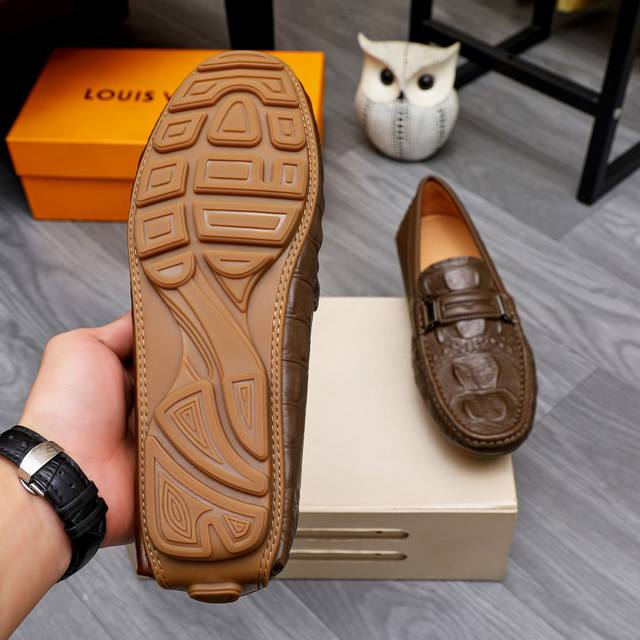 工厂价 LV 新款豆豆鞋专柜一比一制作原单品质、进口原版头层牛皮鞋面里原单原版橡胶大底、{高品质看得见} 5色可选!码数38-44 37.45.46.可订做