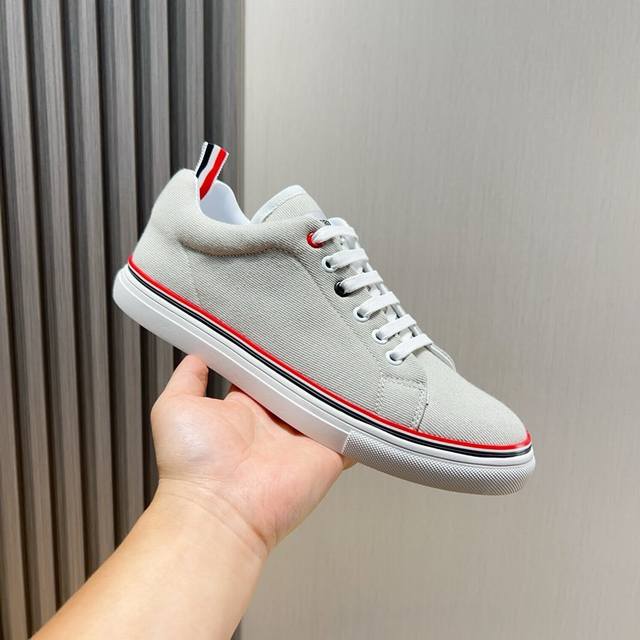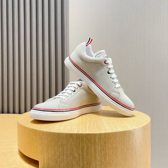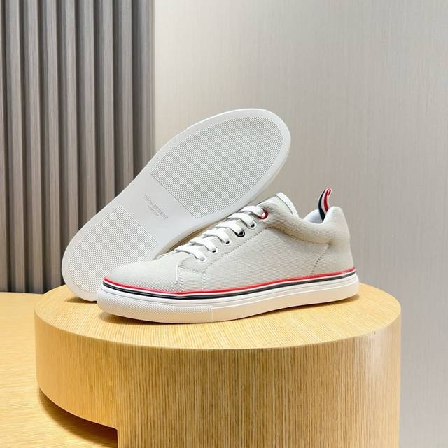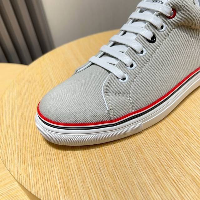 工厂价 THOM BROWNE 汤姆 布朗 new york 汤姆再上爆款!这个邪魅酷感的新锐品牌 让我们在这个夏天有了放松 时髦 个性的新选择 TB白鞋风暴.鞋面采用原版布料内里羊皮 鞋底采用原版鞋底制作 织带红白蓝3道杠杠点亮了品牌的元素 码数:38-44