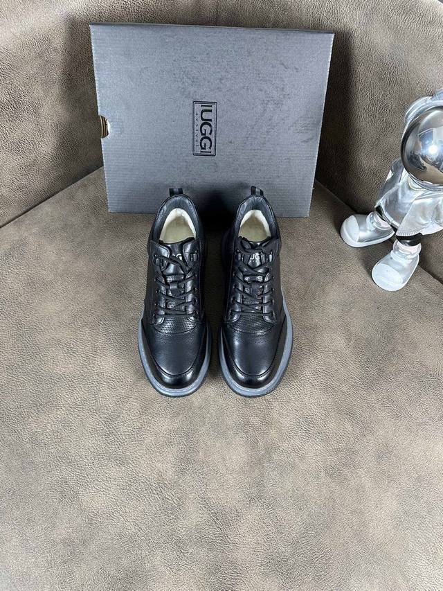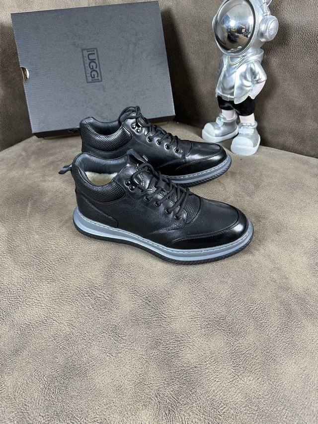 工厂价 Ugg 内里真羊毛不掺一丝假毛 男士牛皮面最受欢迎系列,型男必备 专柜最新限量版顶级出口外贸单,专柜包装。采用高端质感牛皮设计领帮面呈现清晰文理、亲和不失底蕴 休闲卷绳系带款粗车线加固鞋底,天然橡胶鞋底领行走更舒适、龙放松 。 39-44