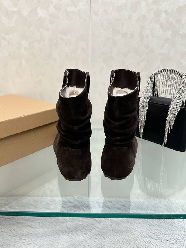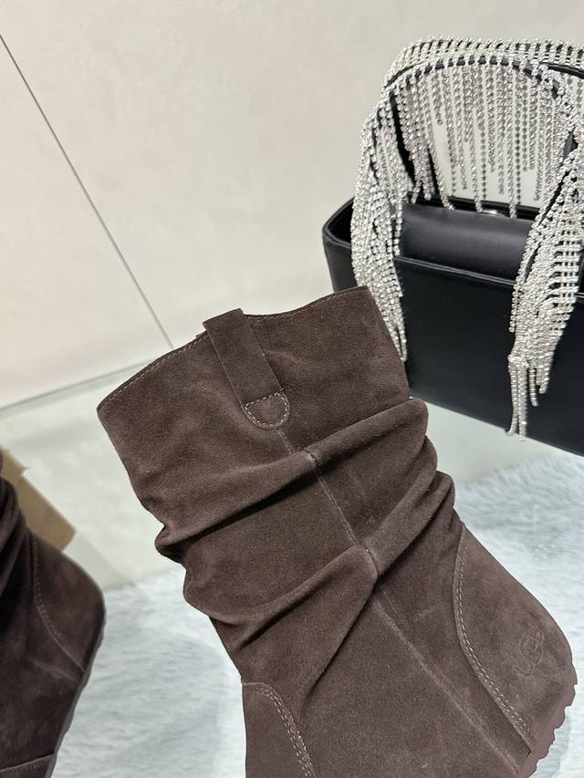 选用优质的材料,内里垫脚羊毛确保毛靴的保暖性和耐久性靴筒堆堆褶皱巨显瘦无论是搭配紧身牛仔裤展现休闲时尚,还是与裙装相得益彰凸显优雅气质♀堆堆毛靴都能轻松驾驭各种风格成为秋冬季衣橱的必备之选