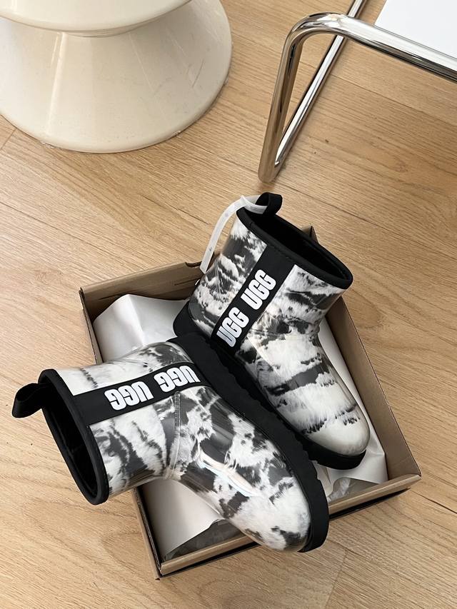 独家开模,两个多月调试,周冬雨同款爆款面市。经典迷你糖果色果冻短靴,ugg字母侧边设计,焕亮潮酷姿态,防水材料,不惧风雨。