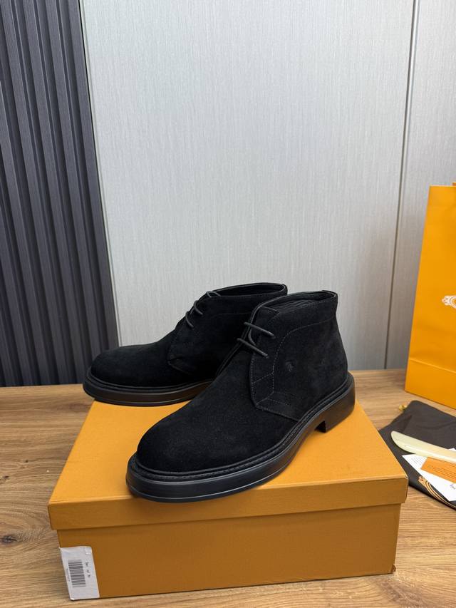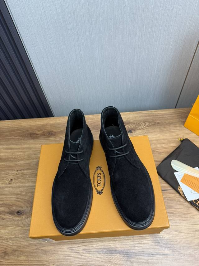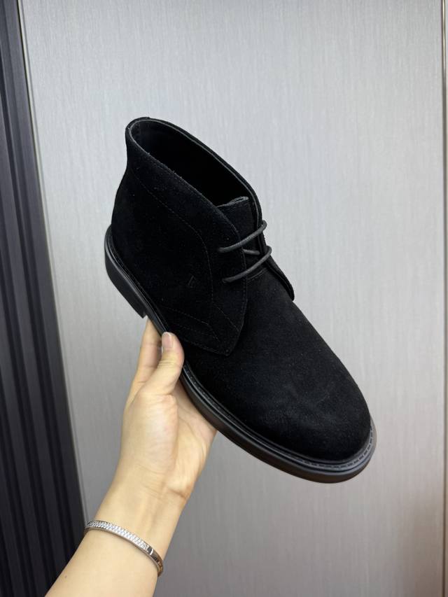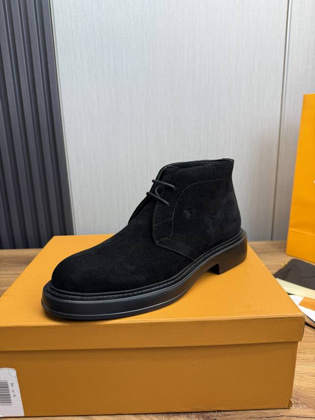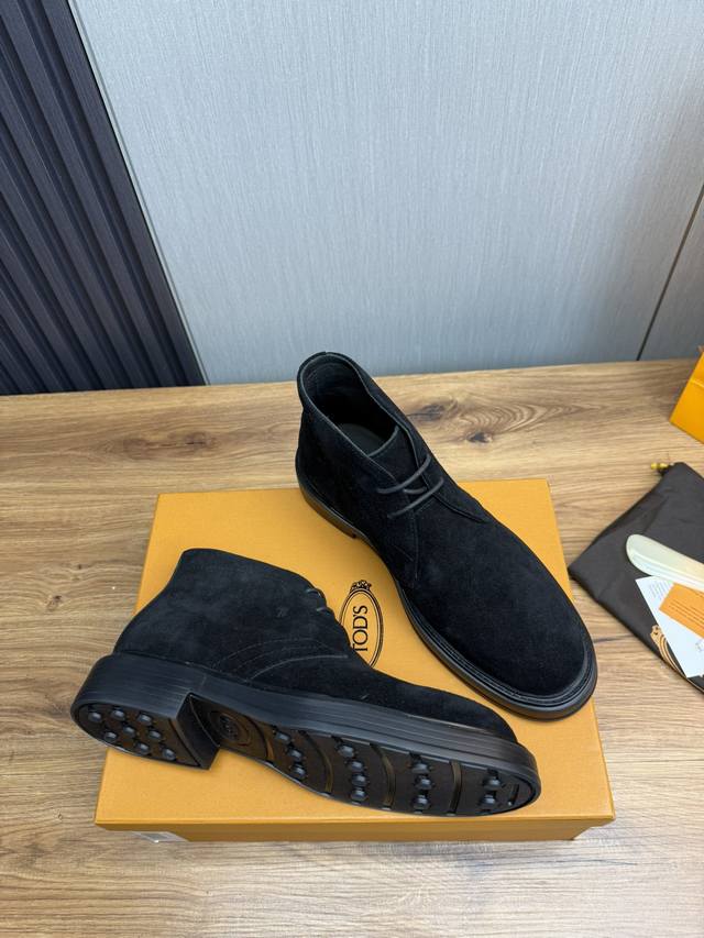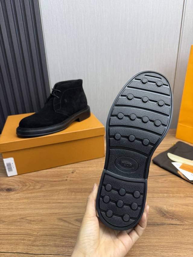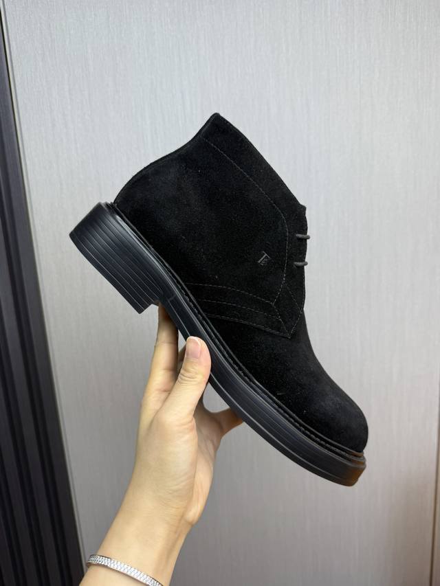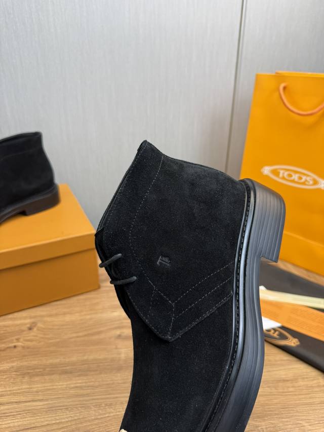 工厂价Tods.男士秋冬及踝靴,体现经典的优雅气质 高雅的外观搭配修长的版型,进口牛皮打造,舒适轻盈,套脚式穿脱方便,内里本染小牛皮,超轻发泡大底,后置提鞋环带
