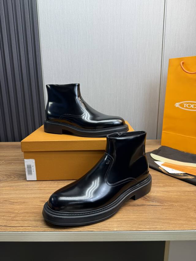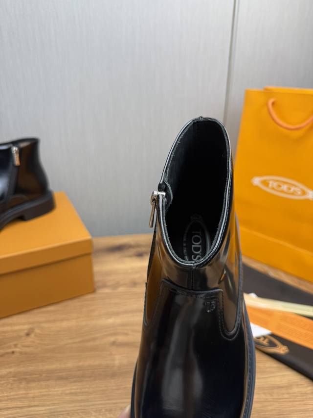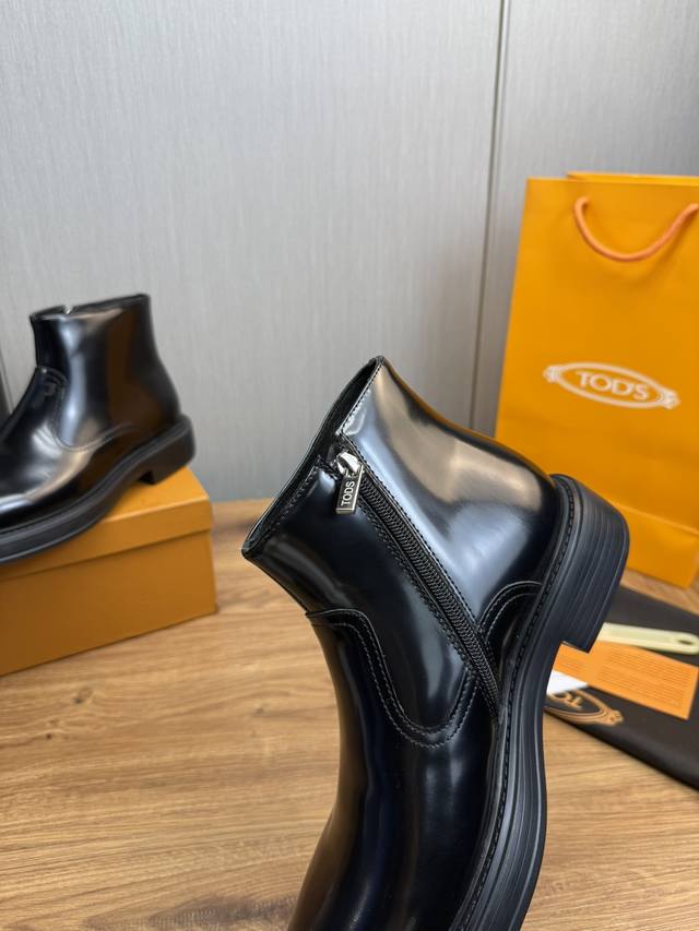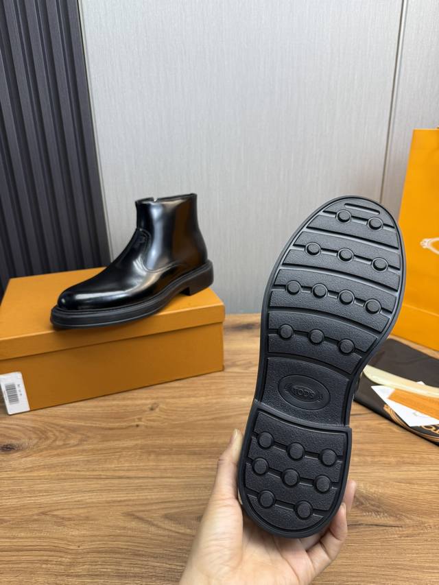 工厂价Tods.男士秋冬及踝靴,体现经典的优雅气质 高雅的外观搭配修长的版型,进口牛皮打造,舒适轻盈,套脚式穿脱方便,内里本染小牛皮,超轻发泡大底,后置提鞋环带