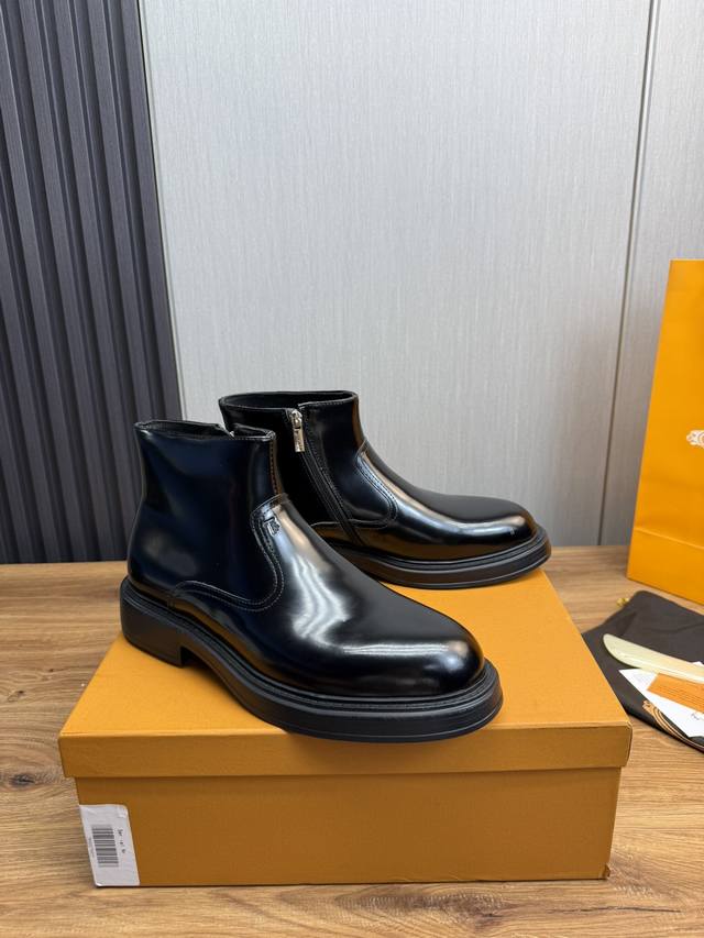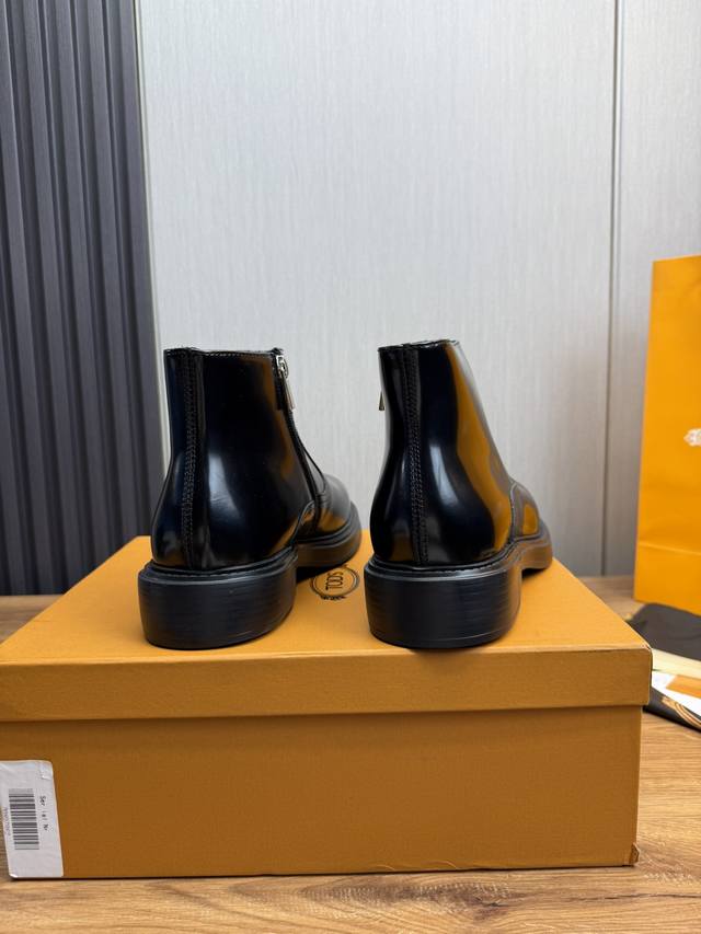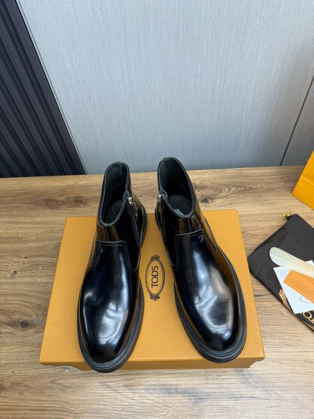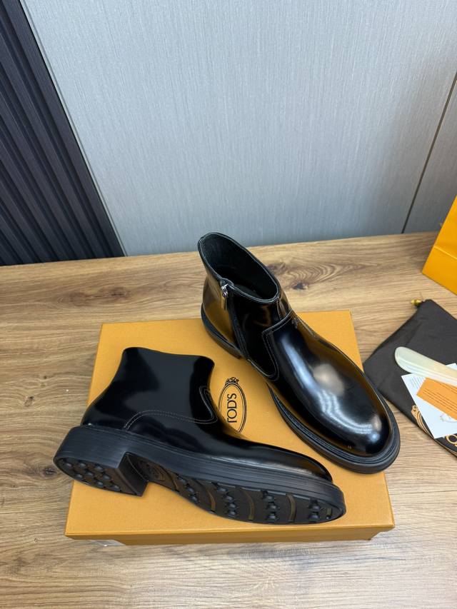 / 工厂价Tods.男士秋冬及踝靴,体现经典的优雅气质 高雅的外观搭配修长的版型,进口牛皮打造,舒适轻盈,套脚式穿脱方便,内里本染小牛皮,超轻发泡大底,后置提鞋环带