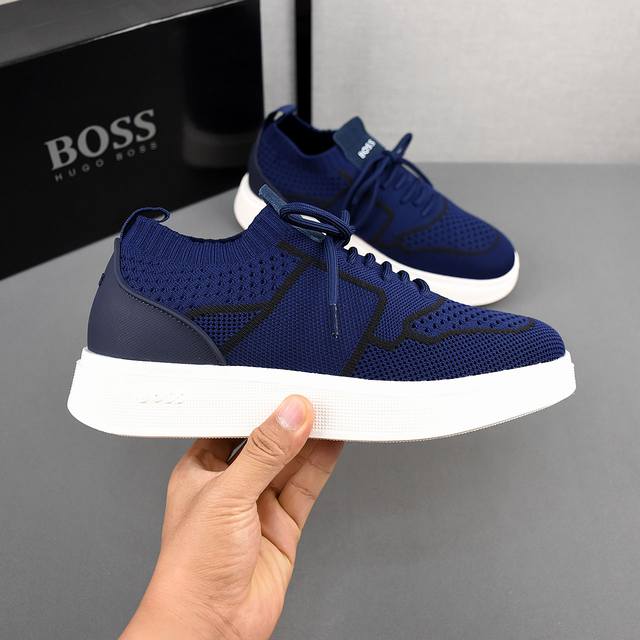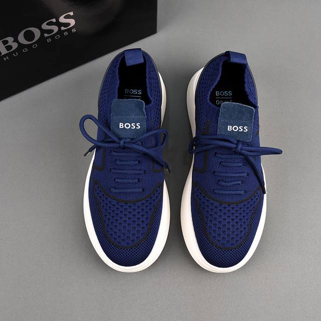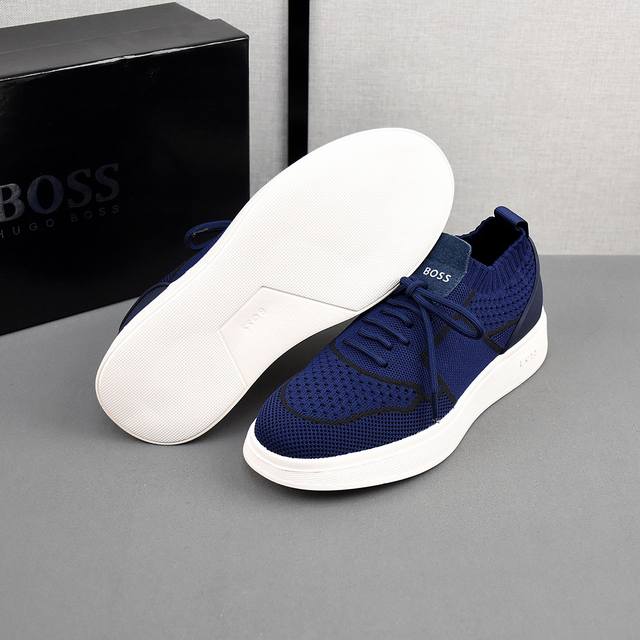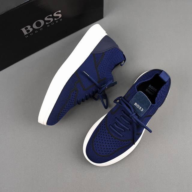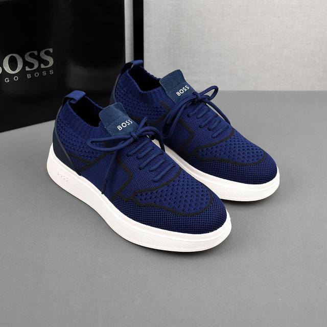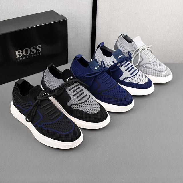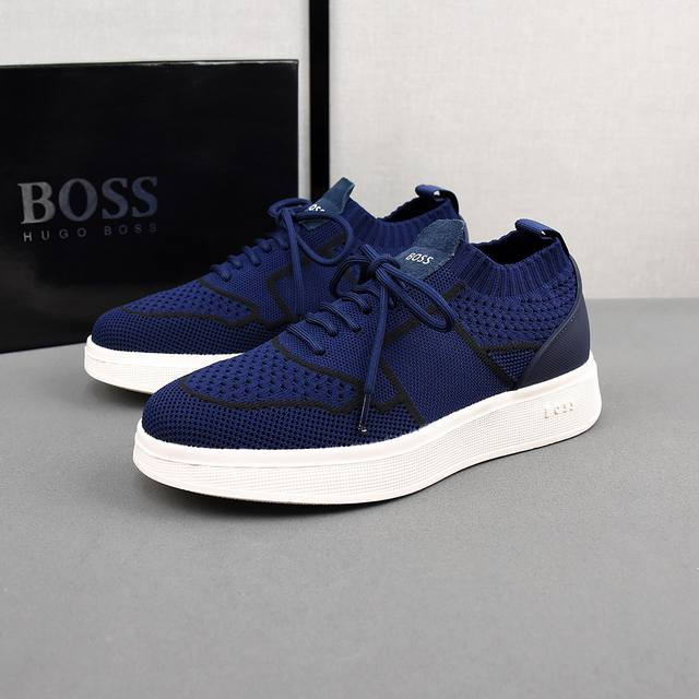 工厂直 Boss 透气夏季飞织运动鞋,整身采用飞织面料,轻便套脚设计,超轻发泡鞋底,男码38-45