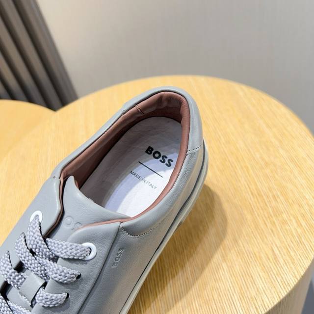 / 工厂 Boss 新款男仕运动鞋 知名运动品牌新款隆重上市 以奢华高端设计出货 鞋面原版定头层牛皮制作 牛皮内里垫脚 叠层设计鞋面线条感层次分明,轻质橡胶大底。轻