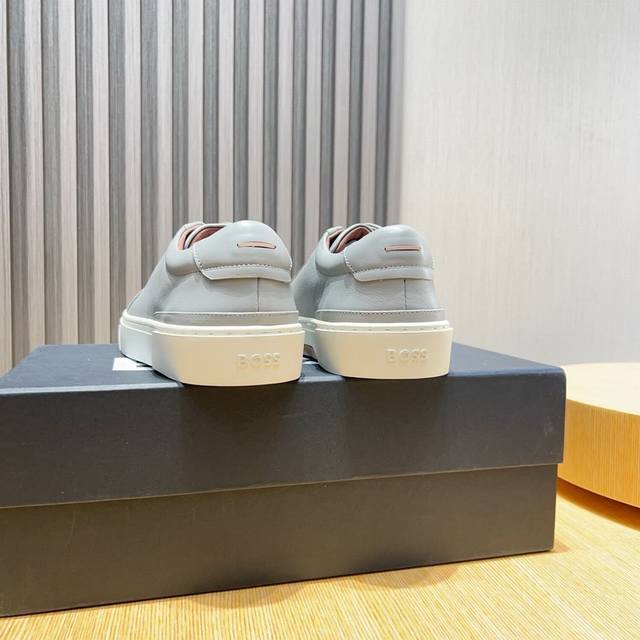 工厂 Boss 新款男仕运动鞋 知名运动品牌新款隆重上市 以奢华高端设计出货 鞋面原版定头层牛皮制作 牛皮内里垫脚 叠层设计鞋面线条感层次分明,轻质橡胶大底。轻奢风格,鞋面透气不闷脚,简约大气,上脚舒适富有潮流感。Size:38-44 45定做不退换