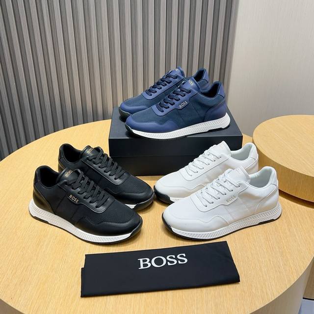 / 工厂 Boss 新款男仕运动鞋 知名运动品牌新款隆重上市 以奢华高端设计出货 鞋面选用原版定制透气布制作 羊皮垫脚 叠层设计鞋面线条感层次分明,轻质橡胶大底。轻