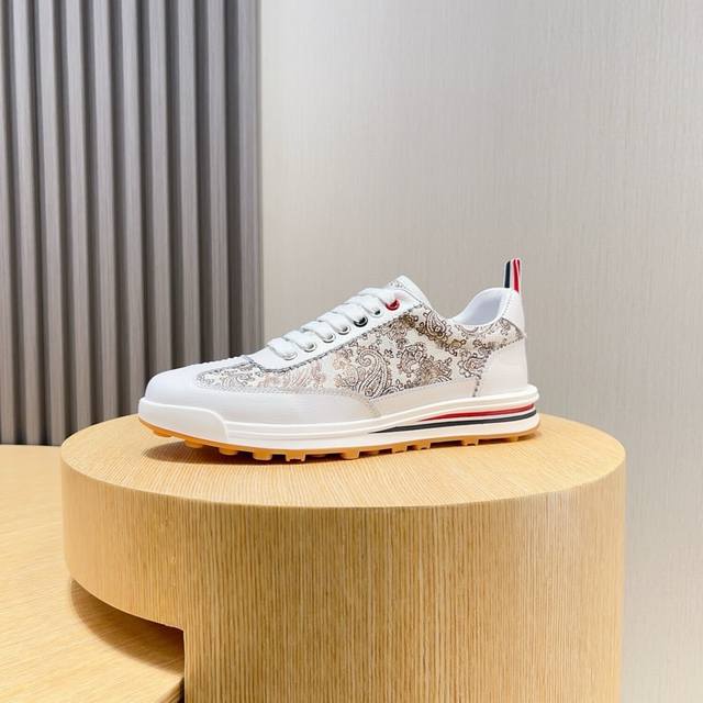 工厂 Thom Browne 汤姆 布朗 New York 汤姆再上爆款!这个邪魅酷感的新锐品牌 让我们在这个夏天有了放松 时髦 个性的新选择 Tb白鞋风暴.鞋面采用原版布料内里羊皮 鞋底采用原版鞋底制作 织带红白蓝3道杠杠点亮了品牌的元素 码数:38-44