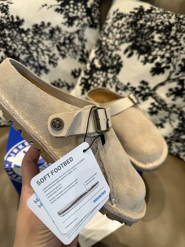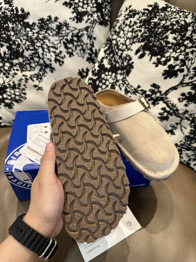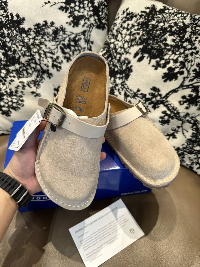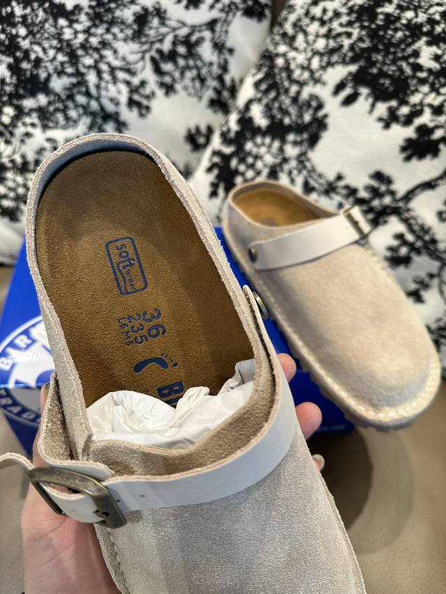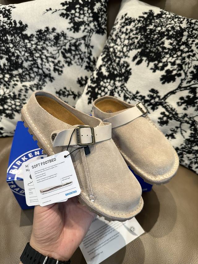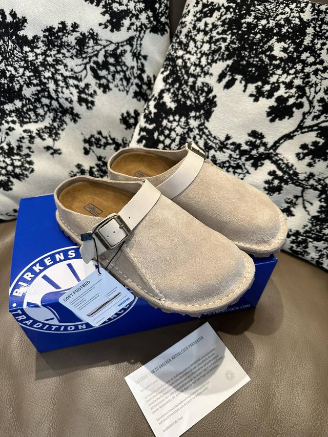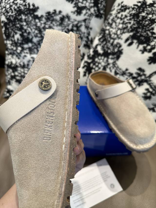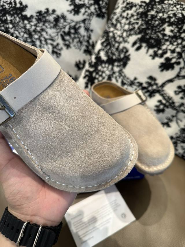 工厂P价 Birkenstock博肯,顶级全牛皮版本,顶级牛反绒皮鞋面。牛反绒皮垫脚。真空电镀复古五金扣饰。木康发泡橡胶底,女码: 35-40
