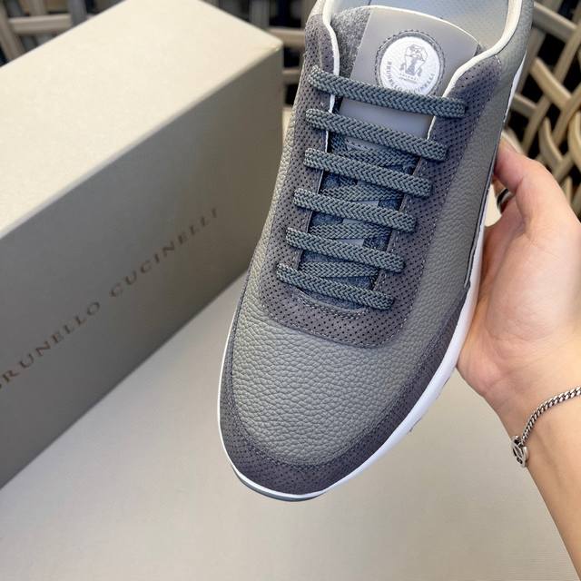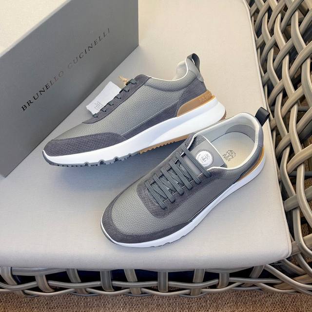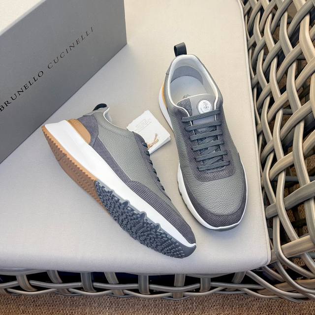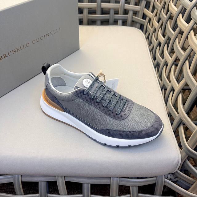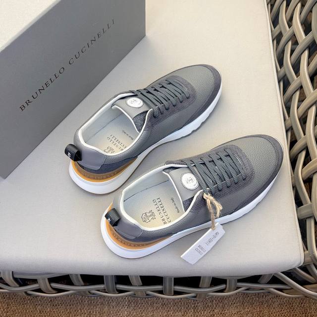 工厂P价 Brunello Cucinelli 春夏新款拼色运动板男鞋 此款平底运动鞋面料采用意大利进口高丝光水洗翻毛皮和意大利进口压摔牛皮,立体感和亲肤感十足!鞋子拼色设计 款式新颖时尚,这个夏天必备单品!内里白色苯染专用小牛皮内里,不掉色,不打滑,透气吸汗不闷脚!品牌专用Logo一体活动脚床,看见即是奢华!搭配超轻、高弹、环保的天然橡胶鞋底,穿在脚上更加柔软舒适!外底上的个性Logo和独特的细纹凹槽设计,奢华度瞬间爆棚!