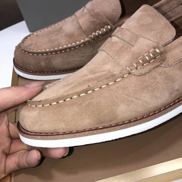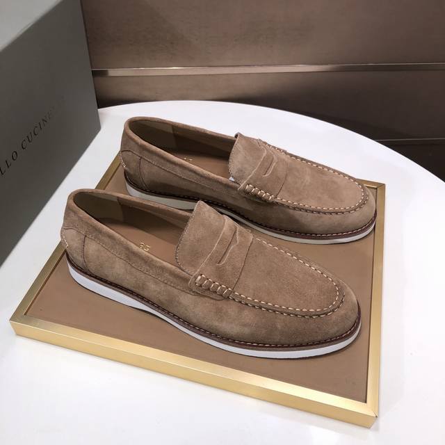 工厂p批 新款Brunello Cucinelli男士休闲套脚乐福鞋 官网同步发售.这款Bc不退潮感的胶底 小牛皮具有超柔软粒纹和怡人触感的特色。橡胶大底 内里