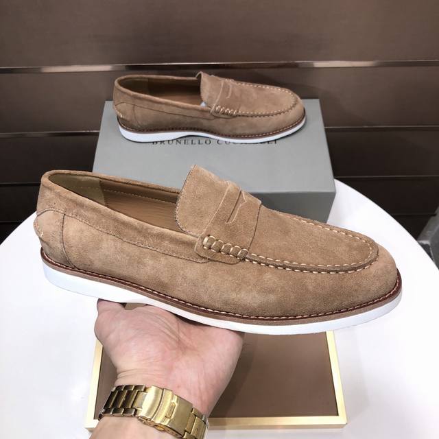 工厂p批 新款Brunello Cucinelli男士休闲套脚乐福鞋 官网同步发售.这款Bc不退潮感的胶底 小牛皮具有超柔软粒纹和怡人触感的特色。橡胶大底 内里垫脚全牛皮 重工打造