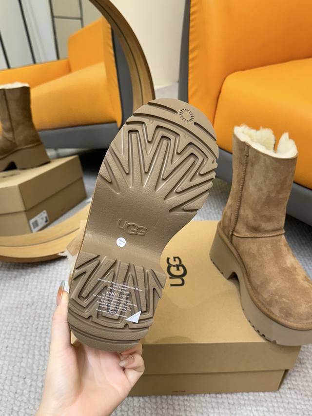 7Cm的坡跟厚底 轻盈舒适皮毛一体的靴筒 翻折式设计是时尚于生活的完美结合