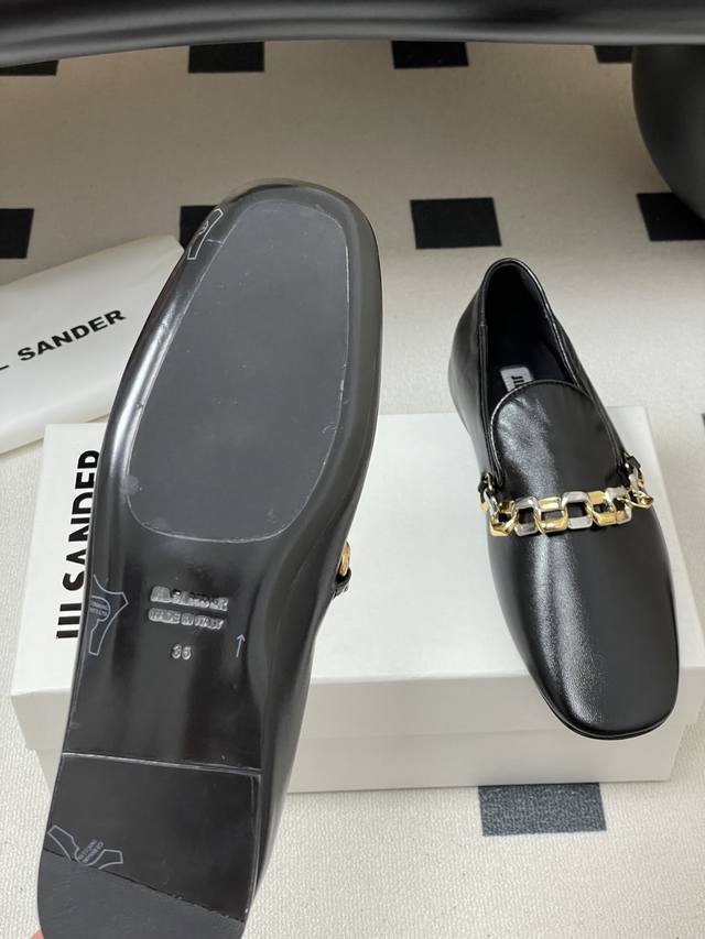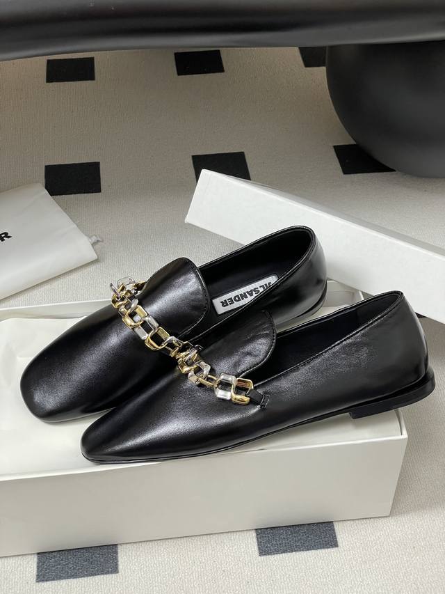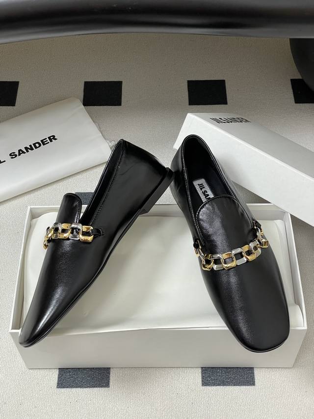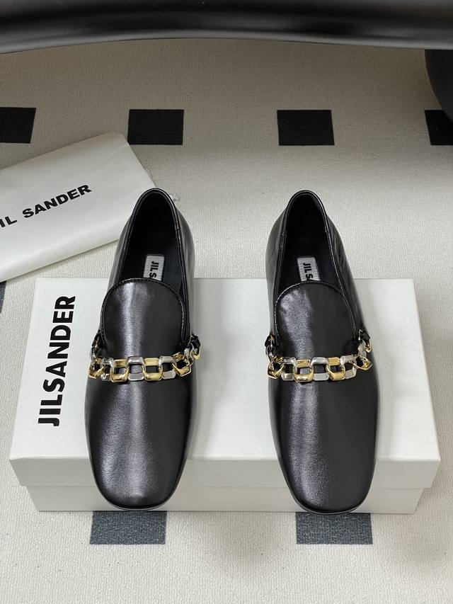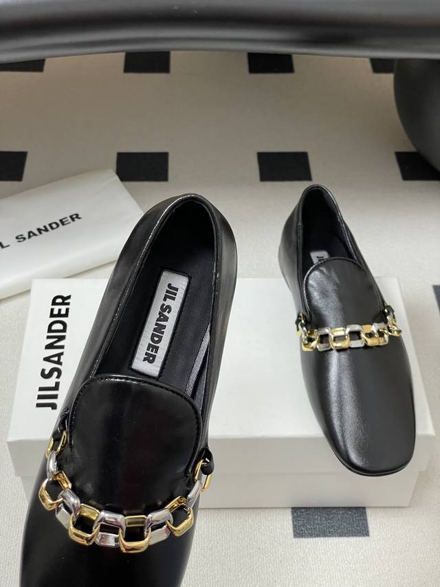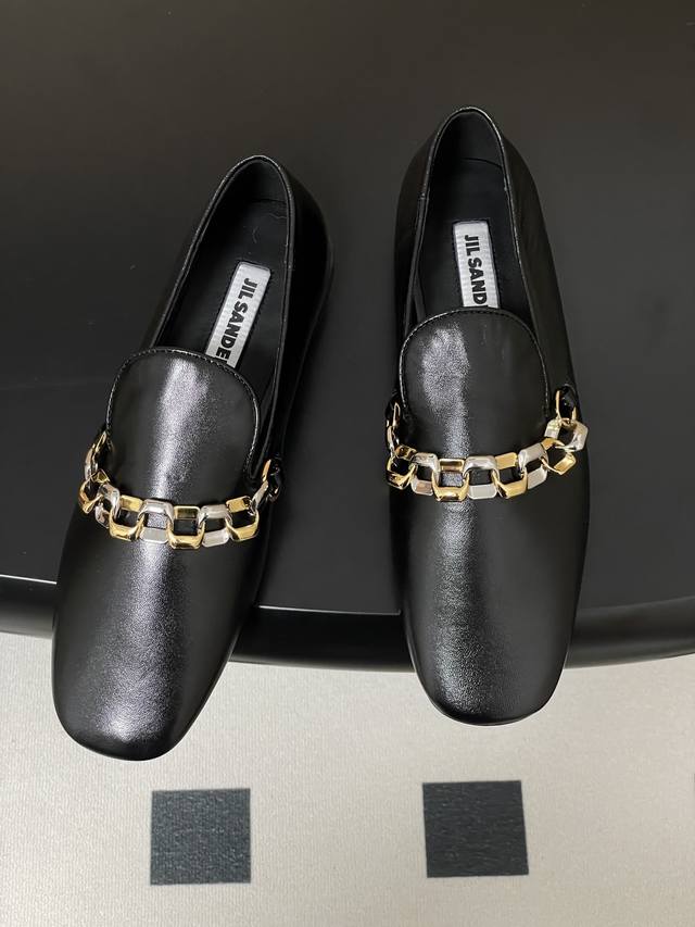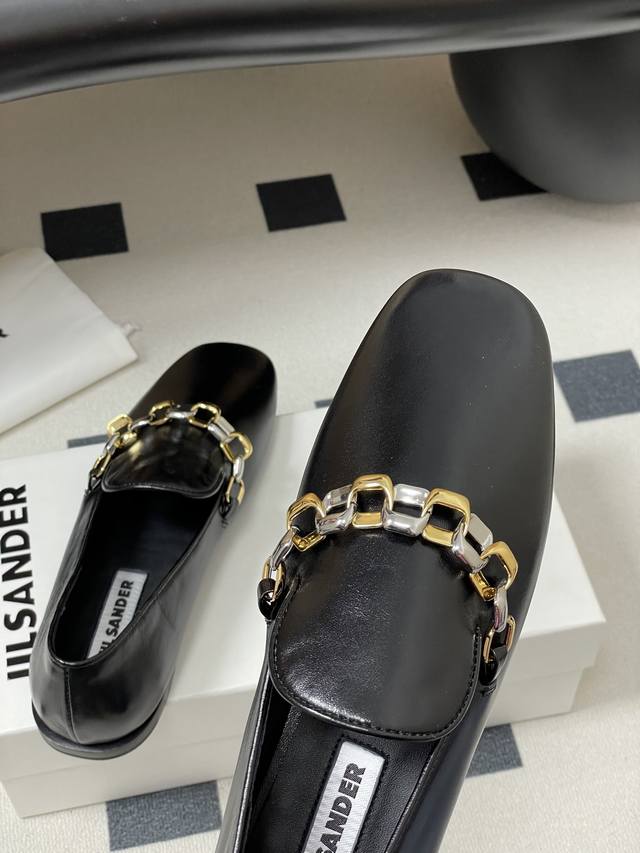 25Ss早秋新款Jil Sander 吉尔桑达 双色打结链条乐福鞋方头一脚蹬套脚平底单鞋