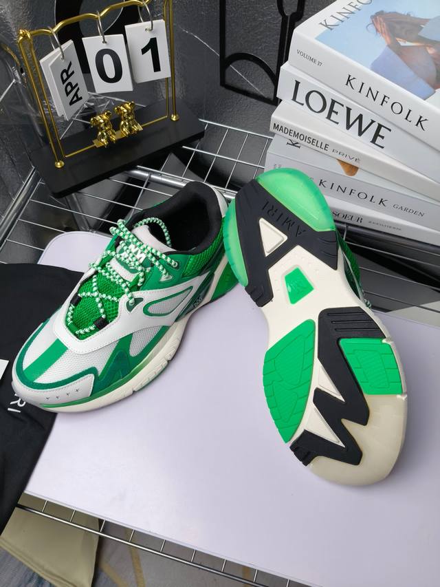 Runway Skel Top 骨头鞋之前黑白 熊猫 白蓝配色已经有不少人热捧 24早春款更是热度不减潮人必备单品 老爹鞋,复古风尚,舒适度爆表。无论是独特的鞋型设计,还是高品质的材质,都彰显出amiri对品质的极致追求。穿上它,你将感受到无与伦比的舒适度,仿佛置身于云端 舒适百搭!进口头层牛皮+原版透气网蔡志强原版定制透气网里 独家开模tpu磨具成型底 底厚: 5Cm