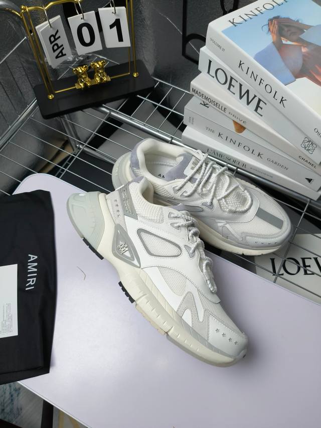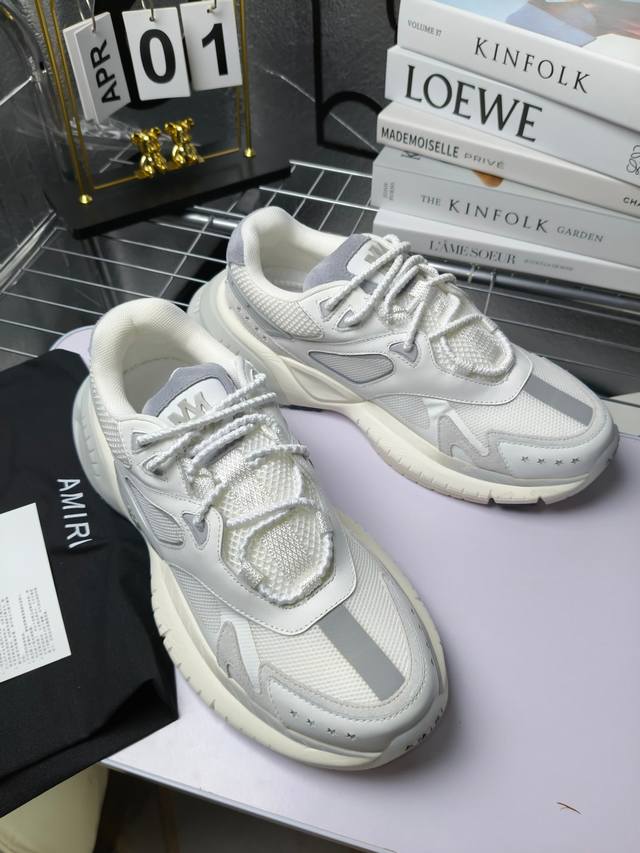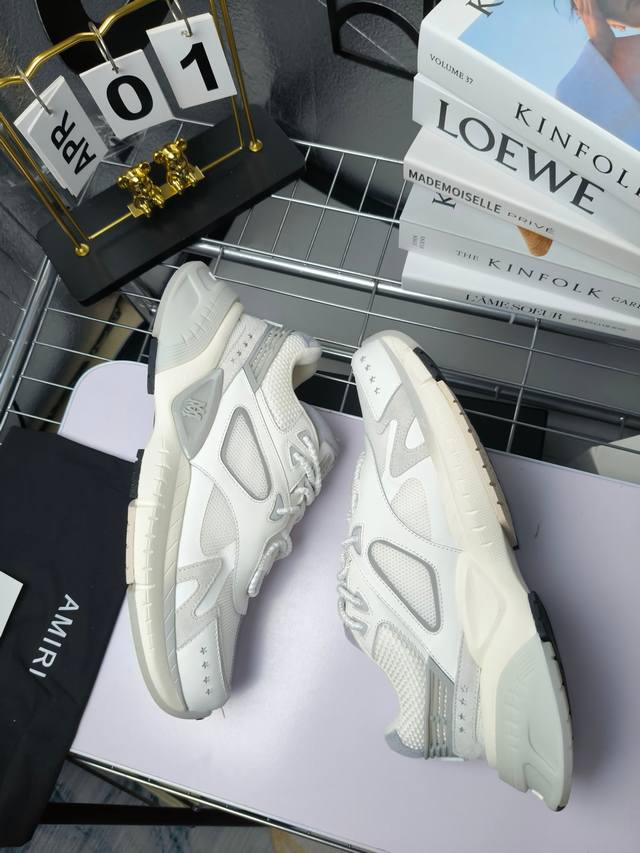 Runway Skel Top 骨头鞋之前黑白 熊猫 白蓝配色已经有不少人热捧 24早春款更是热度不减潮人必备单品 老爹鞋,复古风尚,舒适度爆表。无论是独特的鞋型设计,还是高品质的材质,都彰显出amiri对品质的极致追求。穿上它,你将感受到无与伦比的舒适度,仿佛置身于云端 舒适百搭!进口头层牛皮+原版透气网蔡志强原版定制透气网里 独家开模tpu磨具成型底 底厚: 5Cm
