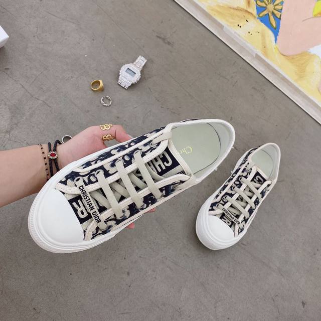 批发直销 女鞋 女装 年D家上新啦,与官网同步 WALK N DIOR 刺绣帆布鞋系列 全棉丝双面立体刺绣 此款鞋所有材料均为原版开模,上至五金,鞋带,大底,PU中垫...鞋面布料都是双面纯棉丝立体电绣,每一个款看上去是色差斑斓,但并没有因此难搭配衣服,整个系列出来,犹如一件件工艺品,独具匠心! 内里:全粒面混种羊羊皮 垫脚:同色牛皮 脚感舒适 我家版型楦型和ZP一模一样,欢迎货比三家 我家配色最齐全,专柜全套包装 码数:35-41