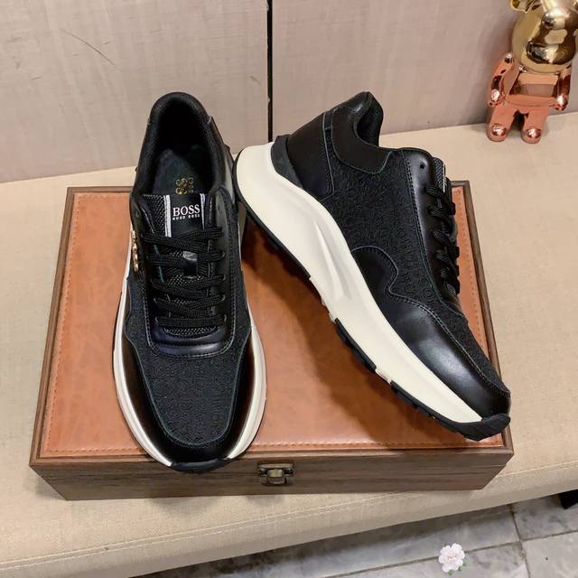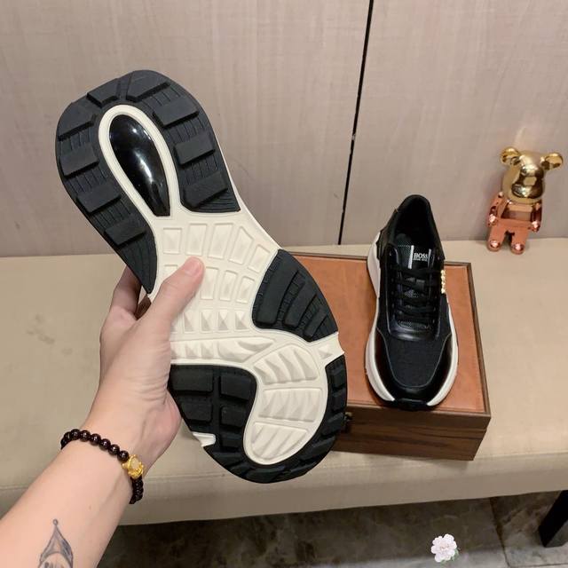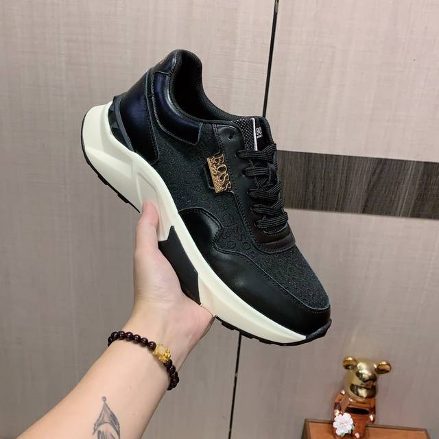 新款: 厂价: Boss* 最新爆款休闲鞋,顶端品牌奢侈~代购,顶级~质量。鞋面選用进口透气牛皮搭配材质透气羊皮垫脚 精细做工。原版个性时尚柔软橡膠耐磨防滑大底
