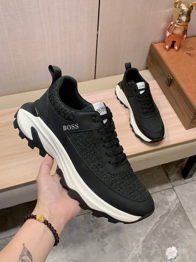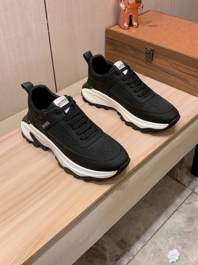 / 新款: 厂价 Boss* 最新爆款休闲鞋,顶端品牌 奢侈~代购,顶级~质量。 鞋面選用进口透气牛皮搭配材质透气羊皮垫脚 精细做工。原版个性时尚柔软橡膠耐磨防滑大