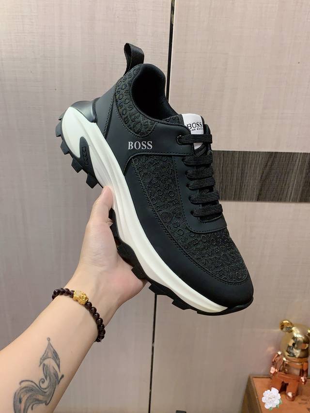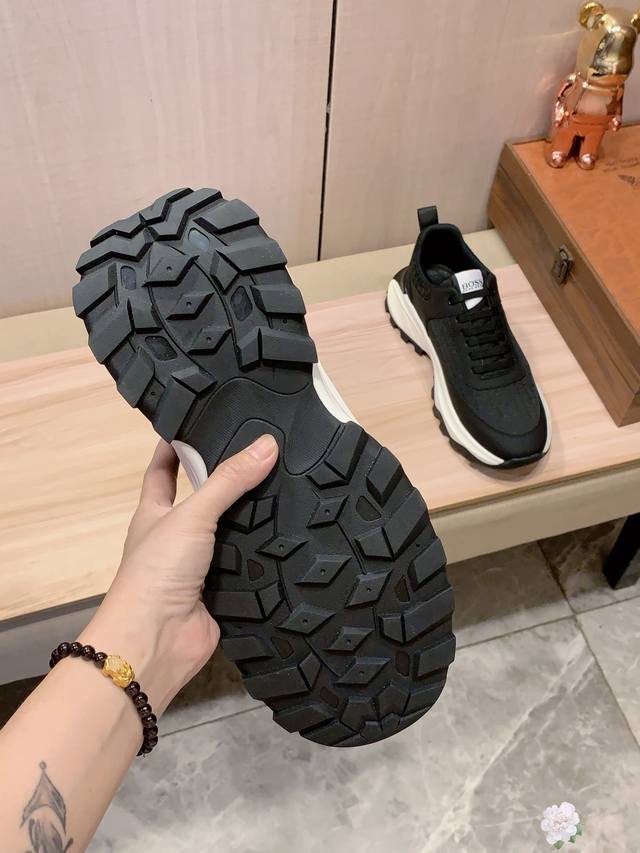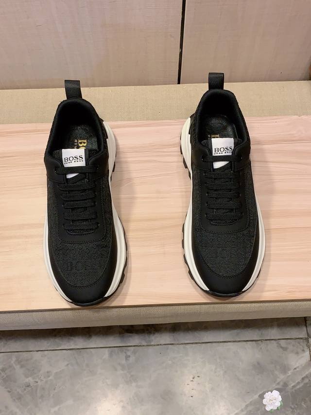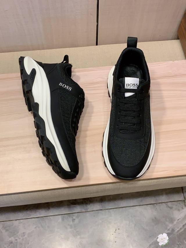 新款: 厂价 Boss* 最新爆款休闲鞋,顶端品牌 奢侈~代购,顶级~质量。 鞋面選用进口透气牛皮搭配材质透气羊皮垫脚 精细做工。原版个性时尚柔软橡膠耐磨防滑大