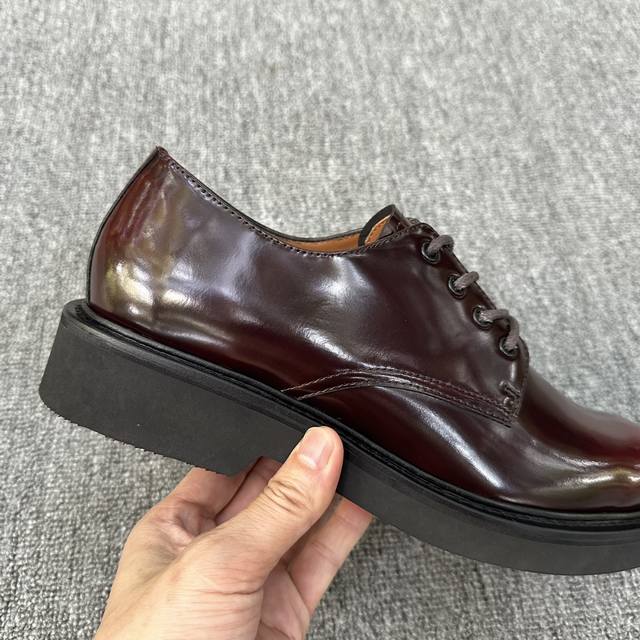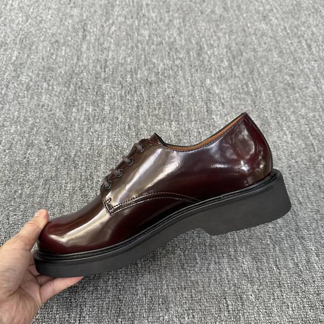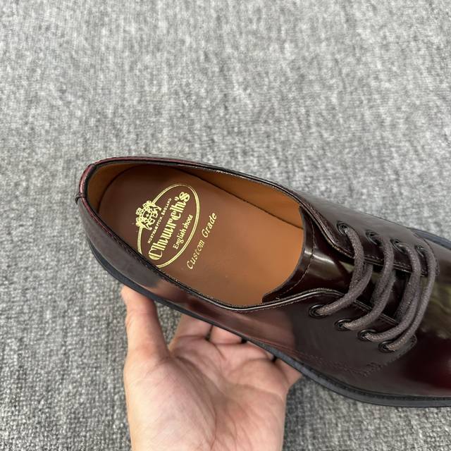 新款!Churchs男士系带lymington手工德比鞋!独特的魅力吸引着每一位追求品质生活的人!真皮沿条配以对比鲜明的质朴外底与富有现代气息的圆形鞋头意大利进口开边珠牛皮皮面,内里采用苯染小牛皮吸汗不臭脚,手工马克缝线工艺,5孔鞋眼系带设计,4.5Cm跟高 穿着舒适不凡,显得匠心十足套戴式皮质鞋垫,轻质橡胶发泡大底,上脚轻便!