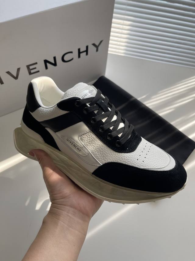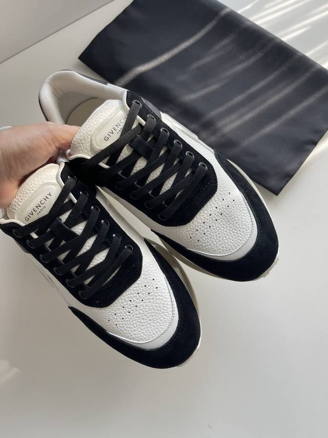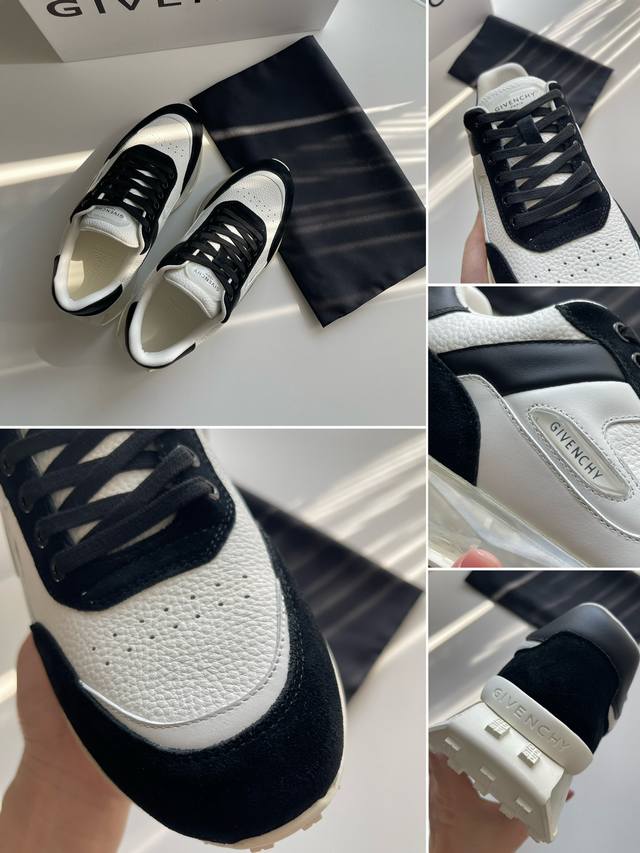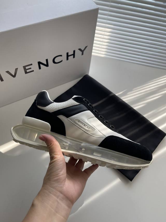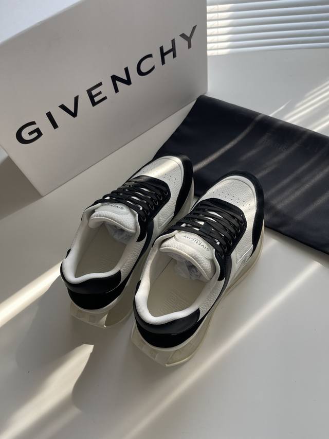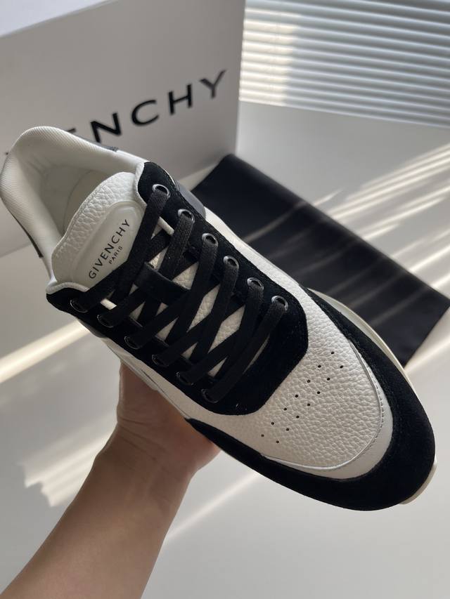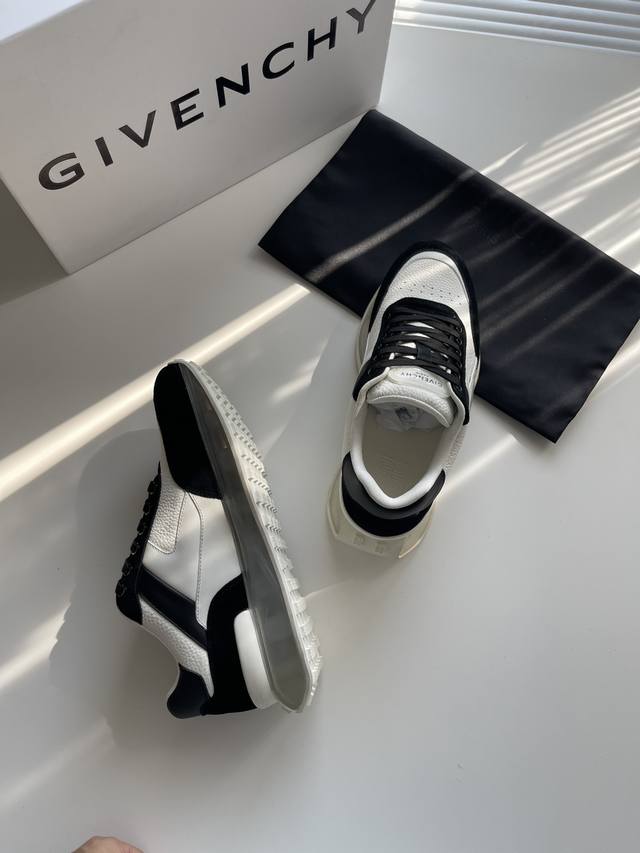 新款Giv创新低帮运动鞋 鞋面牛皮搭配同色系牛反绒皮,同系配色鞋带 鞋舌和后跟饰以GIV~CHY LOGO,侧面饰以GIVENCHY LOGO饰带,采用透明耐磨