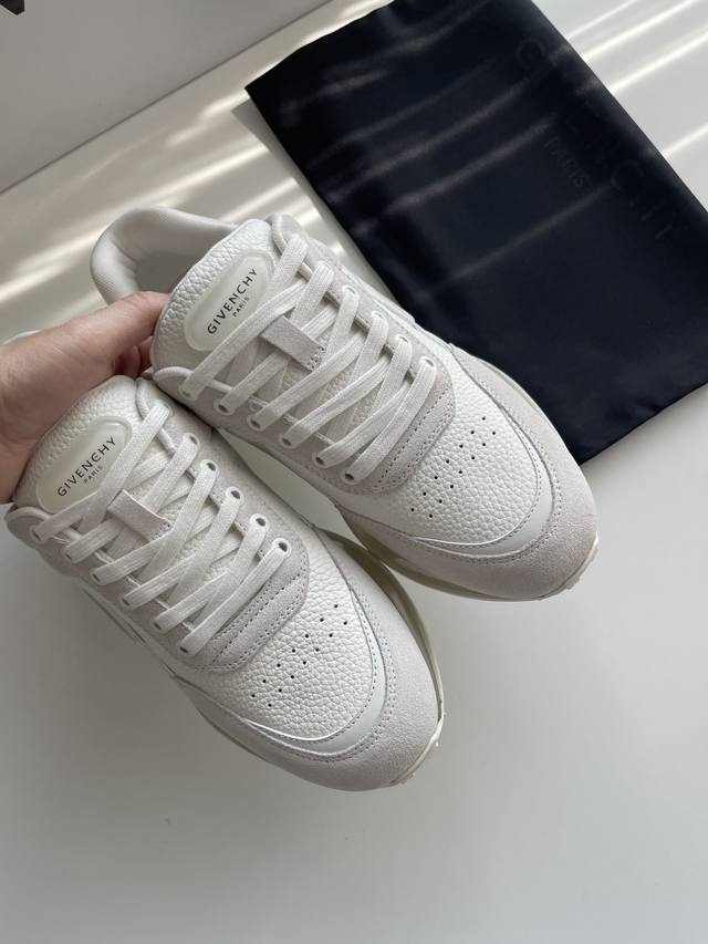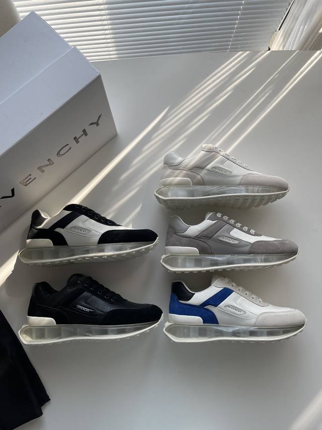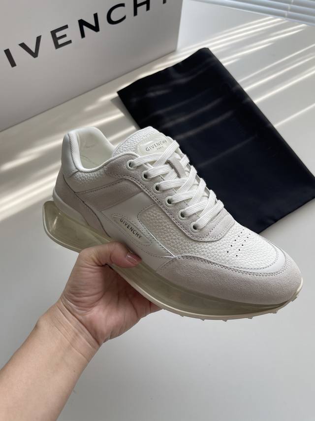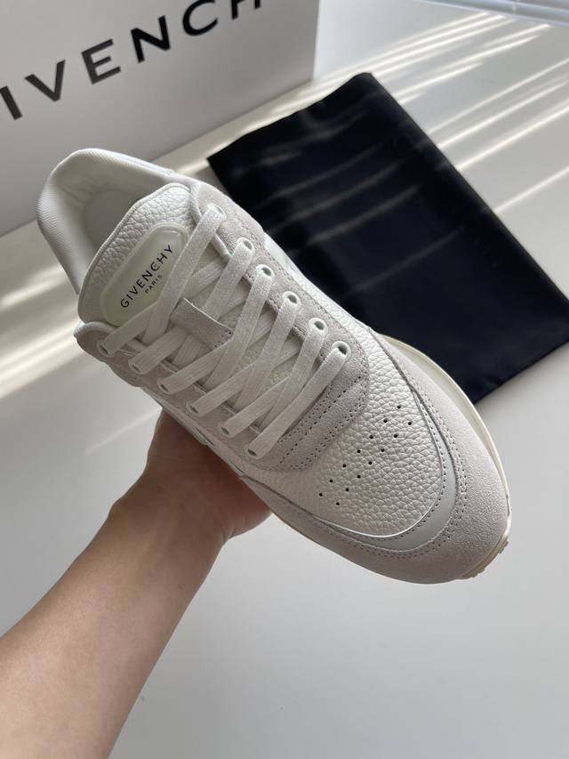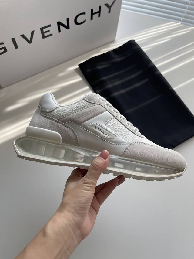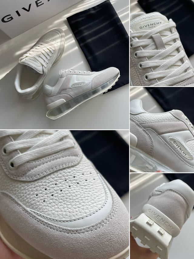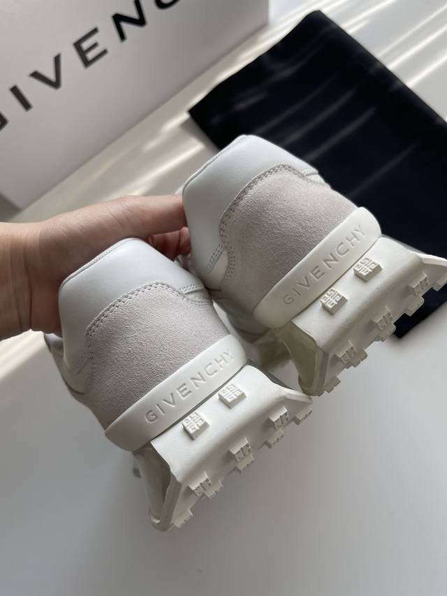 新款Giv创新低帮运动鞋 鞋面牛皮搭配同色系牛反绒皮,同系配色鞋带 鞋舌和后跟饰以GIV~CHY LOGO,侧面饰以GIVENCHY LOGO饰带,采用透明耐磨