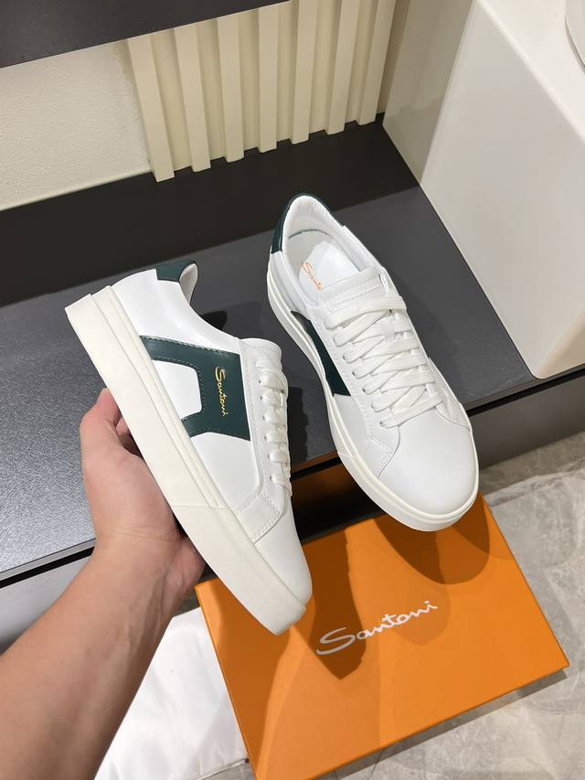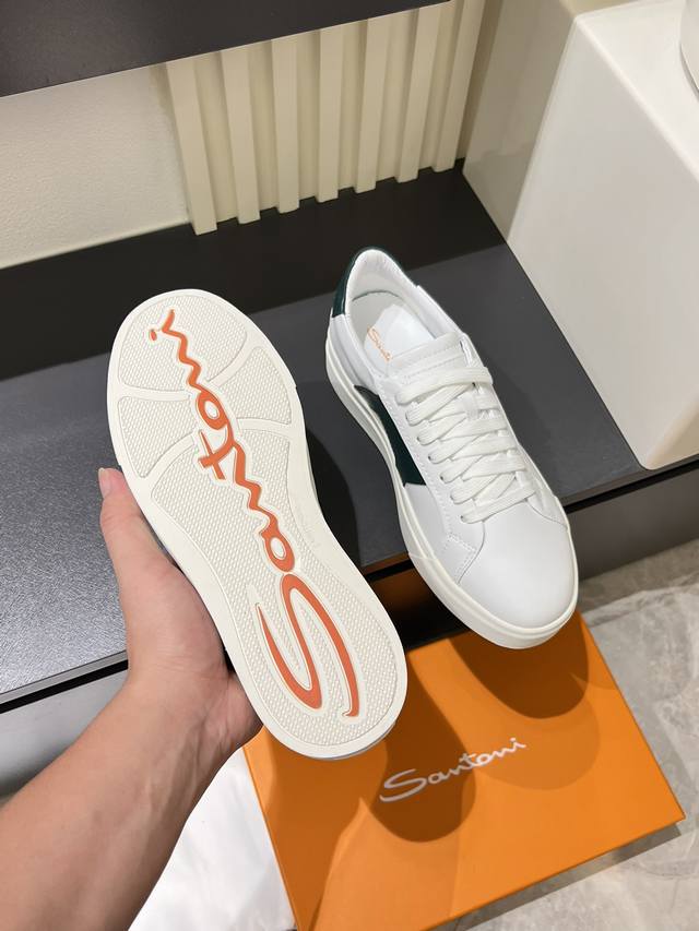 好的抓地力。鞋底模印有santoni字母,彰显品牌特色。