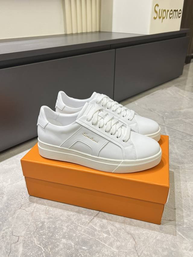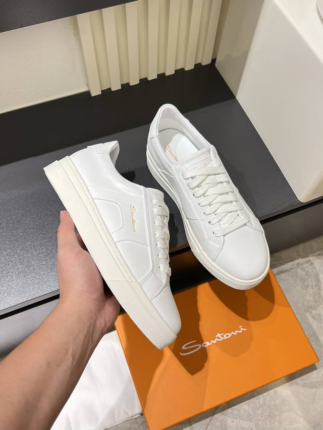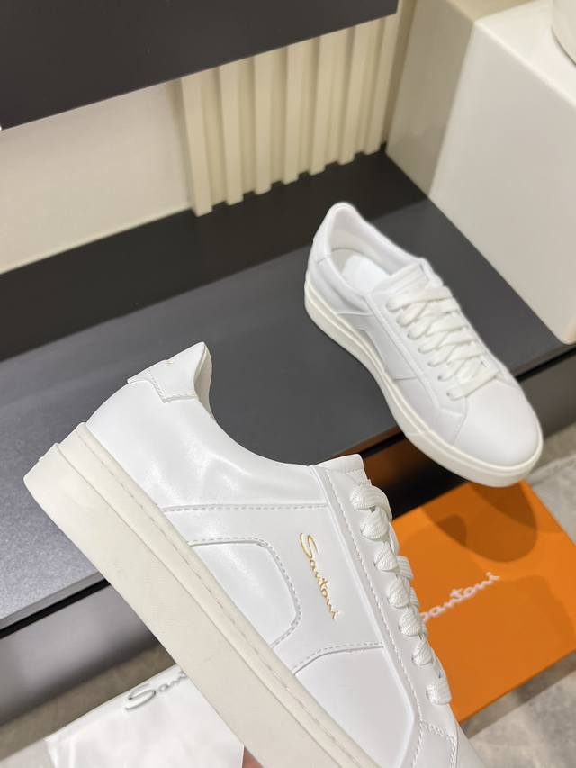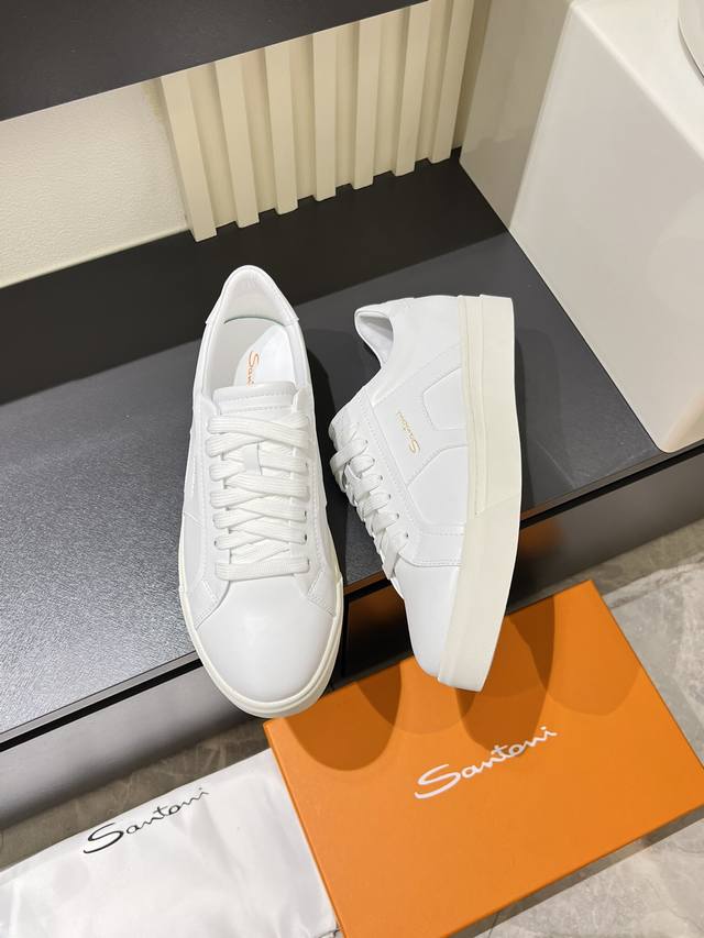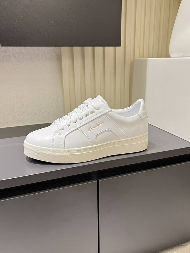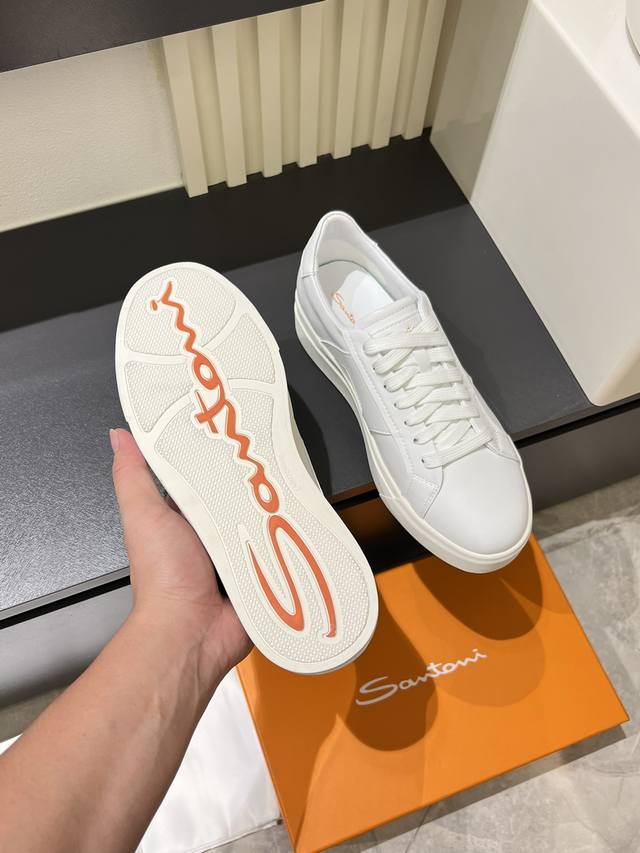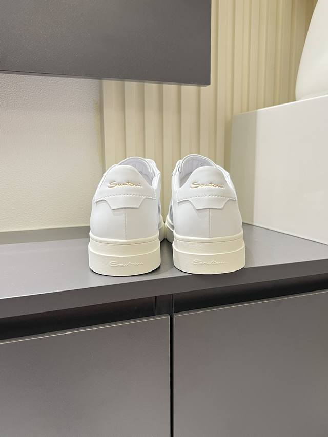 好的抓地力。鞋底模印有santoni字母,彰显品牌特色。