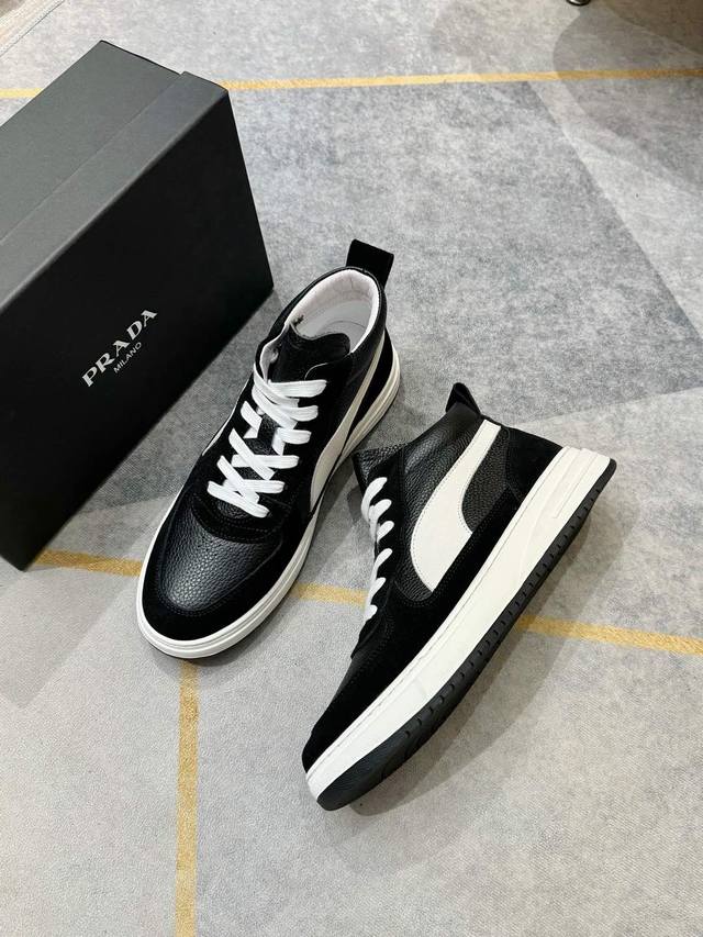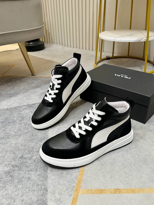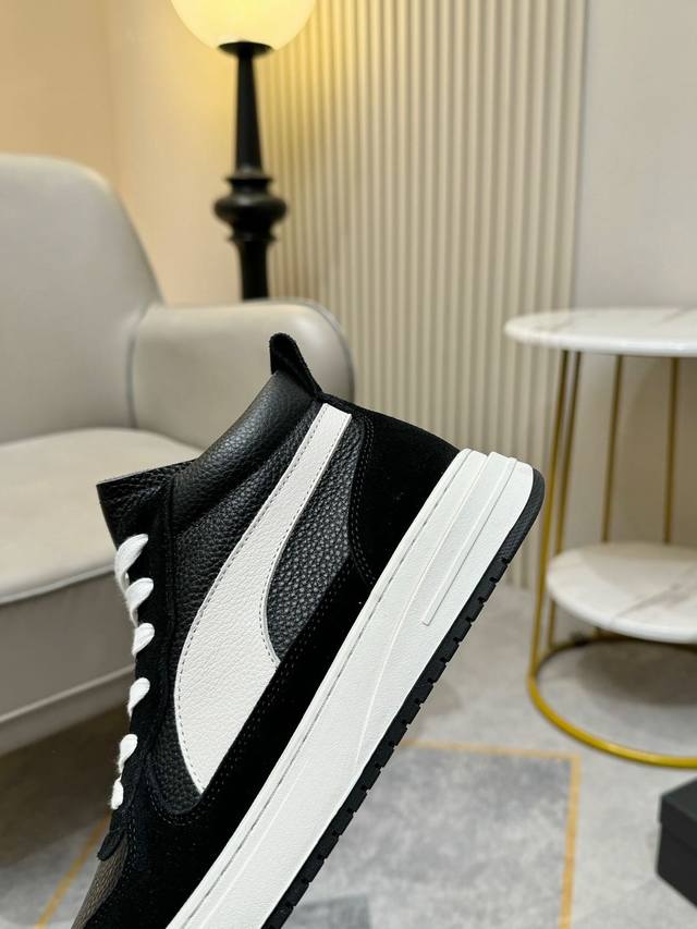 潮牌男士休闲鞋。帅气百搭高帮鞋,鞋面进口优质牛皮,简约大气设计,头层真皮网布内里完美鞋楦,时尚帅气,上脚舒服, 耐磨防滑橡胶大底。码数:38-44。45定做不退
