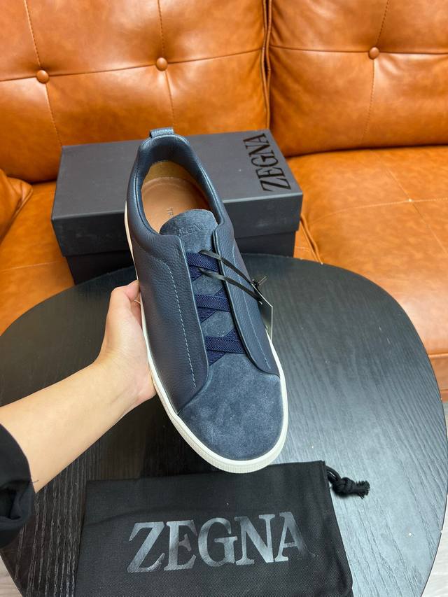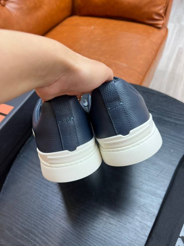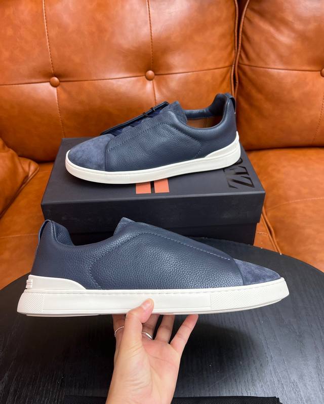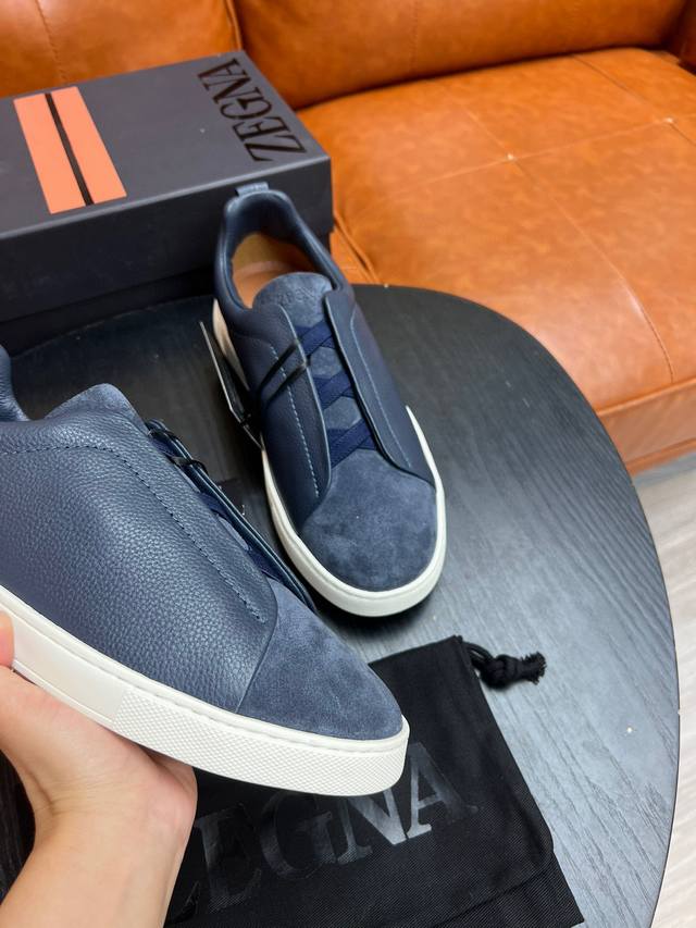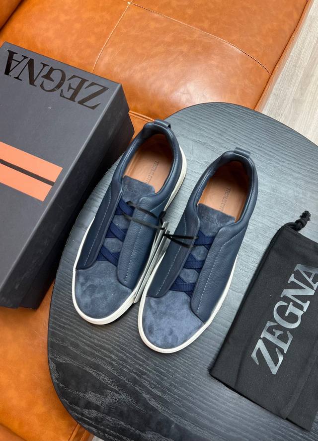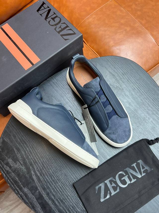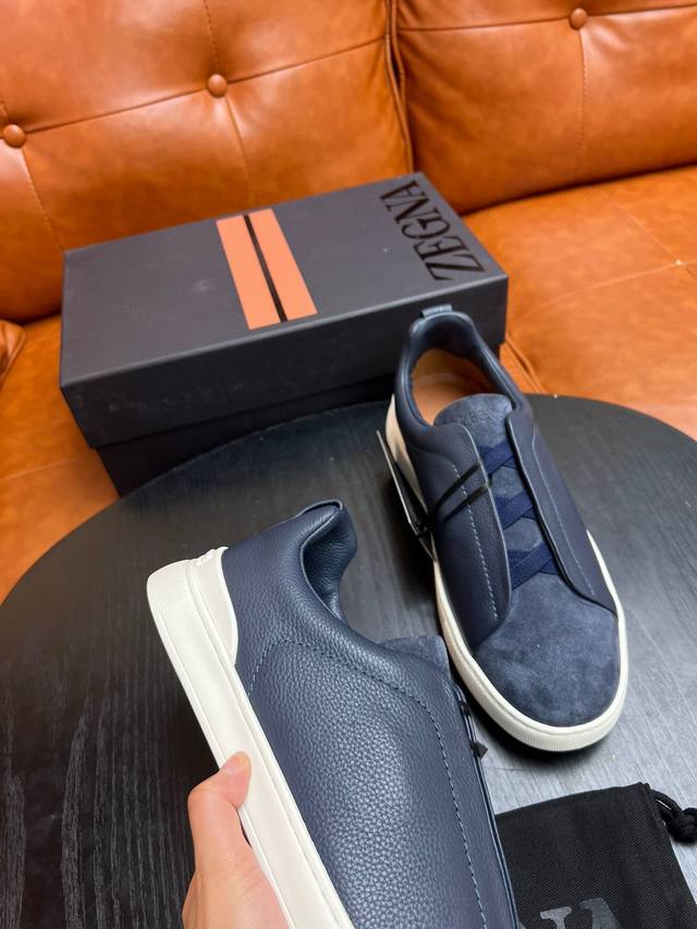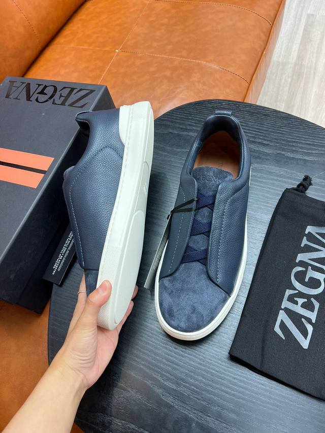 这款 Triple Stitch 低帮运动鞋以柔软的牛皮搭配麂皮制成,为休闲鞋履注入精致格调。标志性三重交叉弹性细节彰显出传统皮鞋的手工缝迹,轻盈和懒人套式设计,完美契合快节奏的生活方式。非常轻盈的橡胶外底上点缀双条纹 Logo 运动细节,以超轻结构重新诠释标志性鞋款。小牛皮内裡,车中底套楦做法。易穿脱套脚交叉松紧带和 3D“波纹”设计。鞋舌热压品牌名称。轻便高弹力橡胶发泡鞋底,后跟加贴 TPU 双条纹品牌 Logo 饰条。为这款运动鞋增添现代动感气息。码数39-44 38