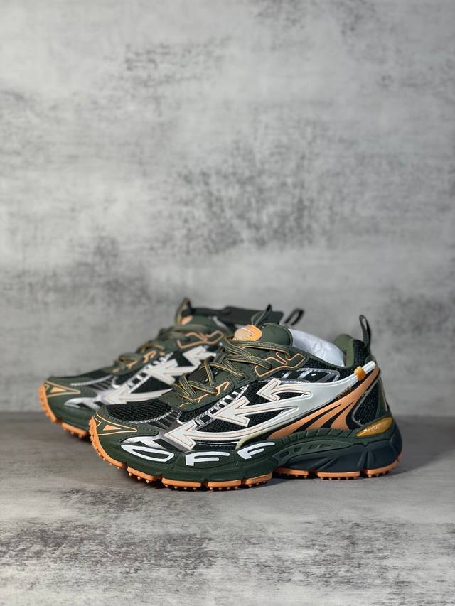 新款运动鞋将经典复古老爹鞋细节设计更加夸张化,并将标志性箭头设计置于显著位置 除此之外,整个系列的色彩搭配也可谓纷繁多样,总有一款适合你 Off-White最新运动鞋款估计