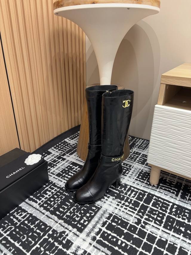 秋冬新款chane*小香金属扣粗跟短靴 长靴