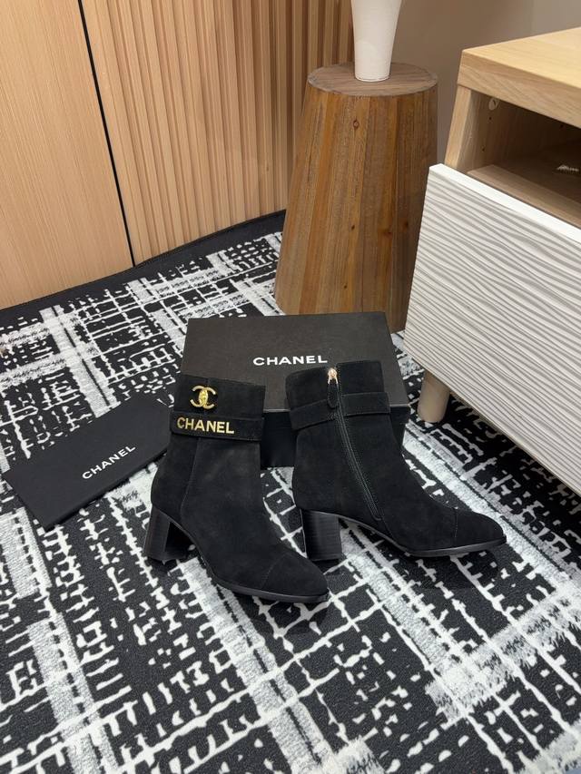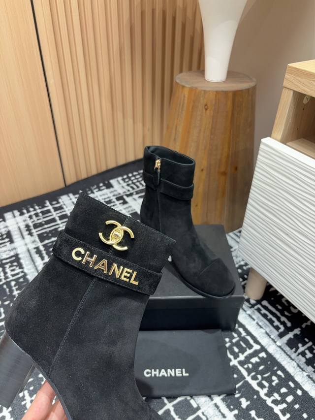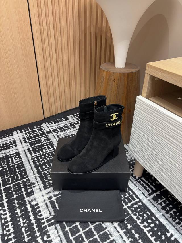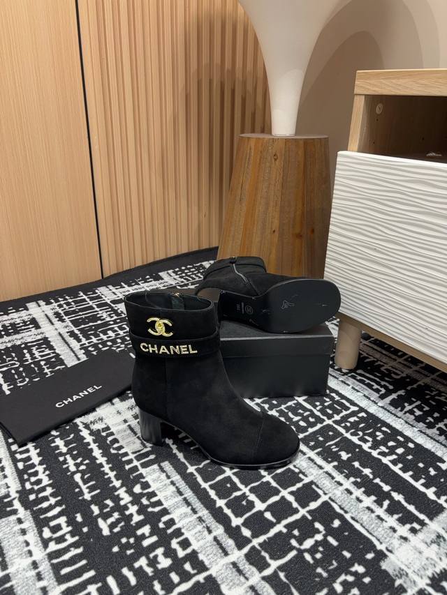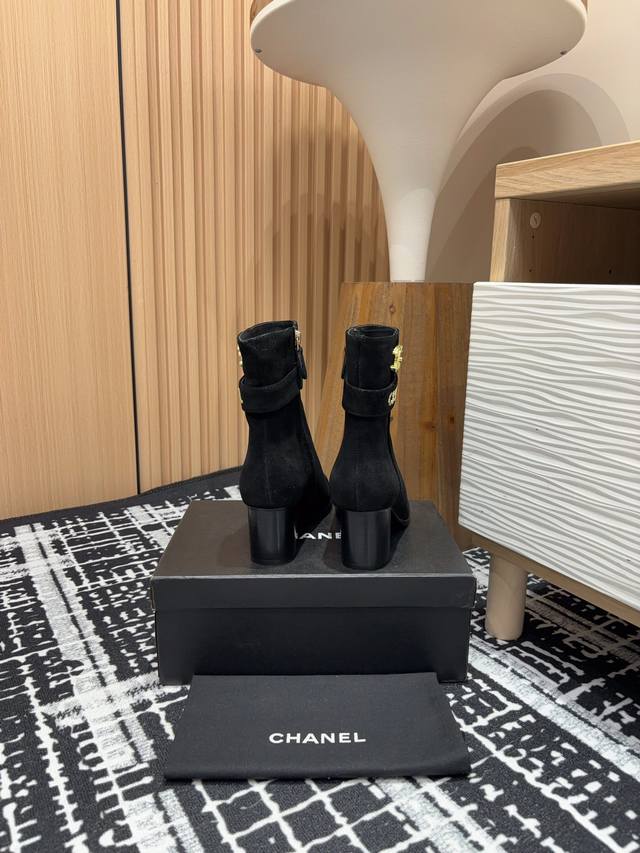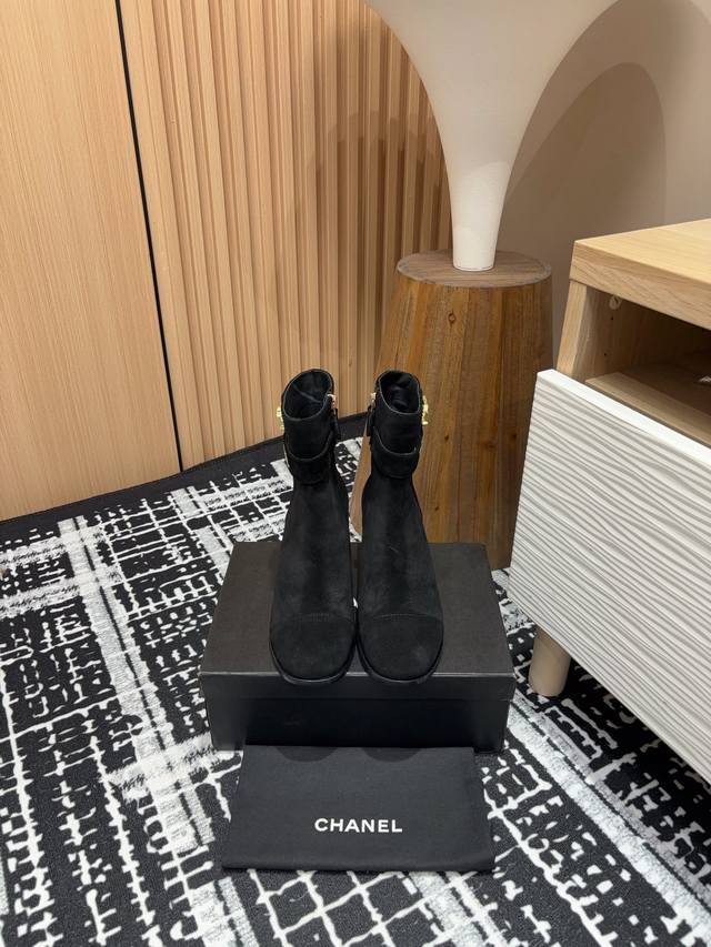 秋冬新款chane*小香金属扣粗跟短靴 长靴