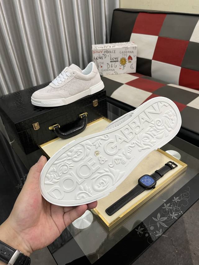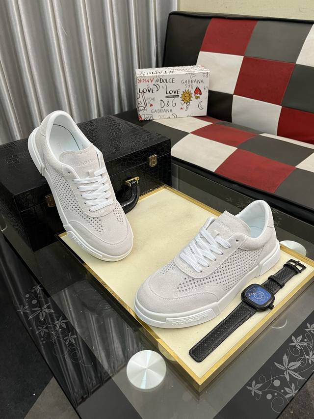 调工厂p价 男装男鞋 运动原单 Dg最新爆款休闲鞋,鞋舌带有品牌标志性细节,丝绸牛皮与牛反绒相结合提升格调。时尚百搭,可为各式造型增光添彩。塑造独具动感活力与摩登气息的精致设计,尽显现代优雅格调。 Size:38-46