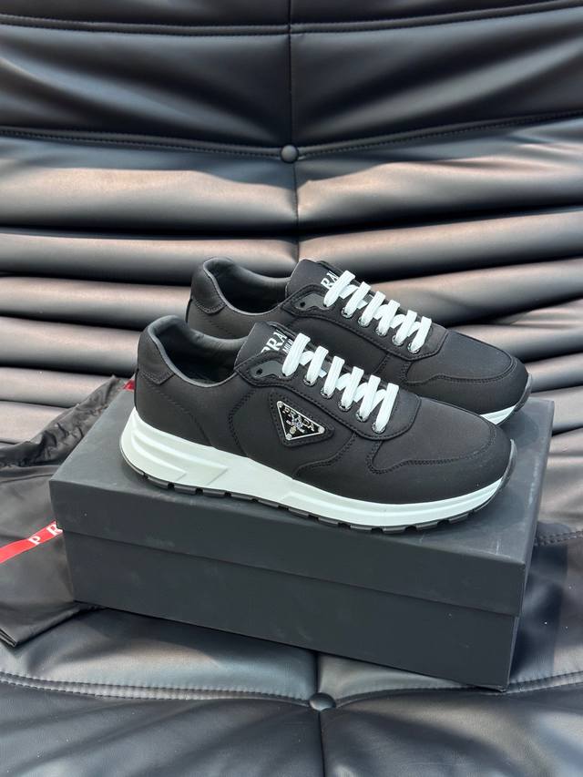 调工厂p价 男装男鞋 运动原单 prad*拉达新品男士时尚运动鞋,进口小牛皮材质拼接原版专用防水布料,内里头层羊皮搭配鞋身侧经典三角标Logo装饰,原版橡胶大底,防滑耐磨,舒适度极高的经典款!38-45码