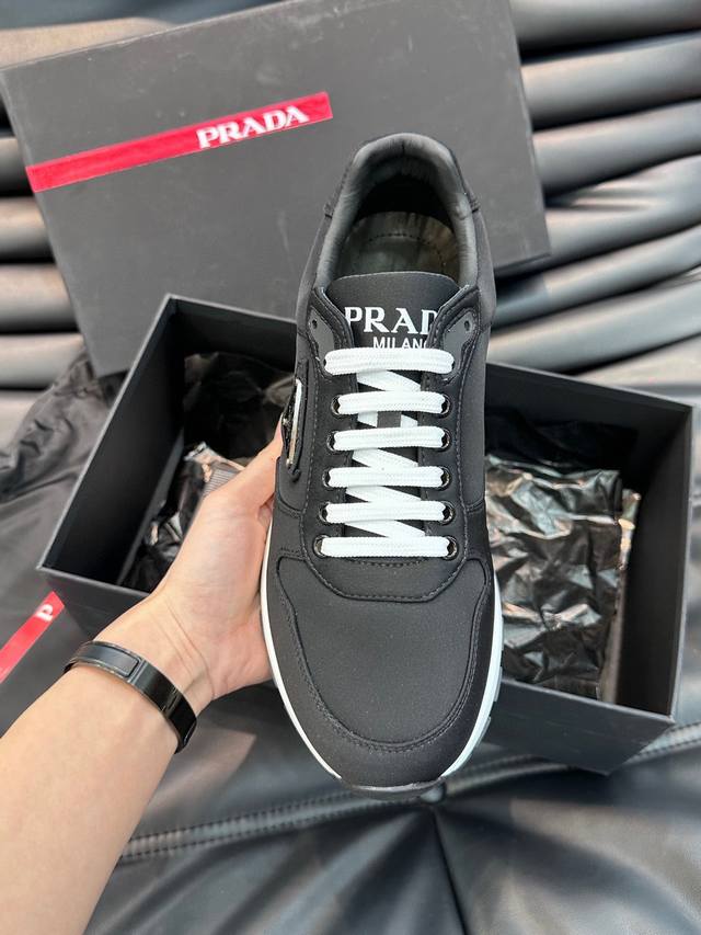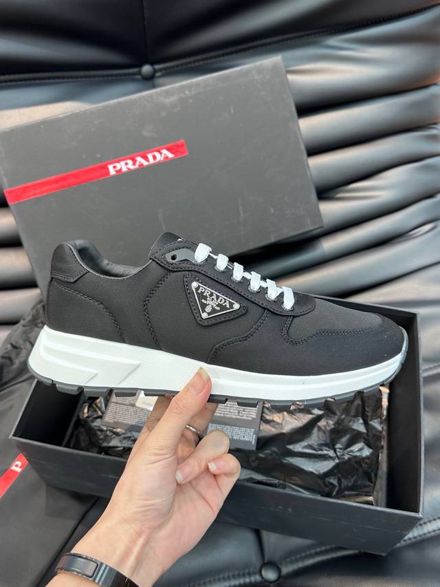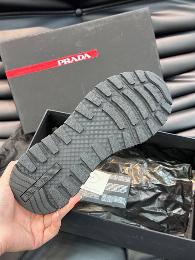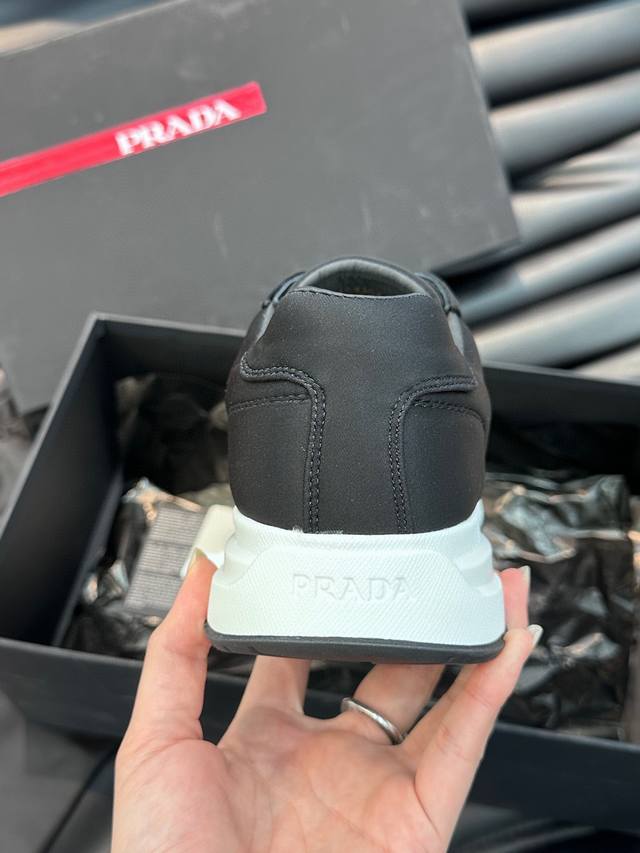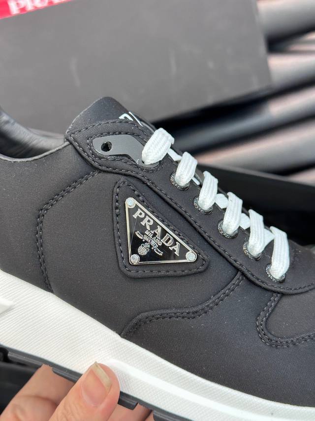 25Ss新款prada薄底休闲鞋德训鞋阿甘鞋这款精致的运动鞋线条流畅,将运动活力与极简线条融为一体,表现当代魅力...